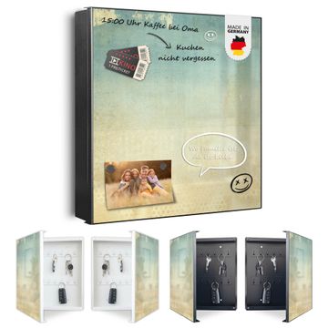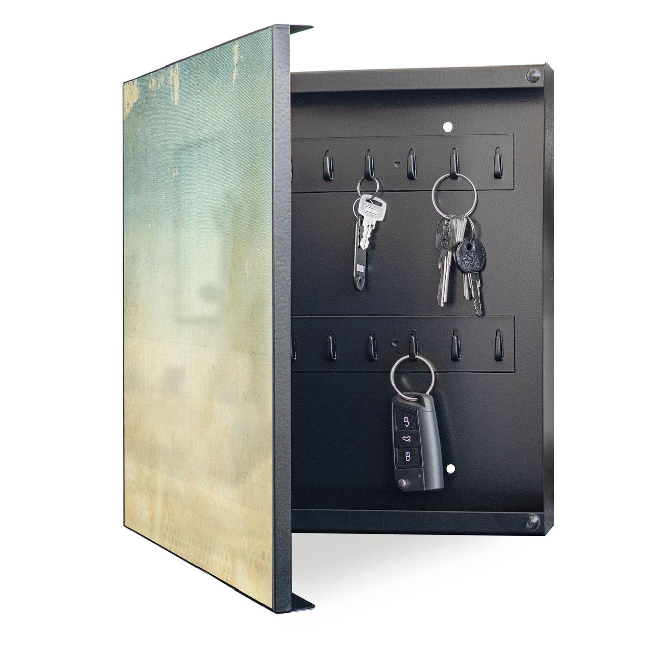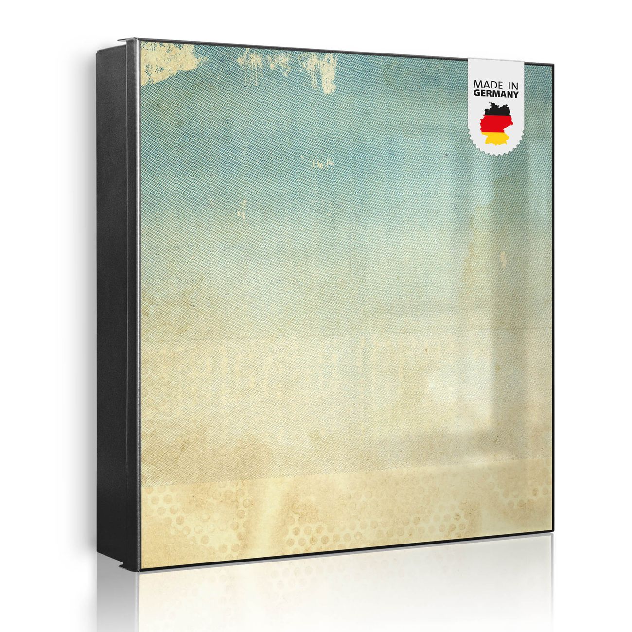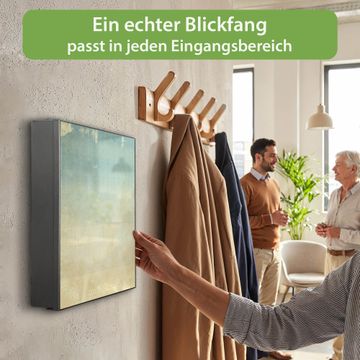 Bringe Ordnung und Eleganz in deinen Eingangsbereich mit dem banjado Schlüsselkasten Motiv Motiv Patina Papier. Die moderne Schlüsselbox kombiniert funktionales Design mit hochwertiger Verarbeitung und wird so zu einem echten Hingucker in Flur, Büro oder Ferienwohnung. ✅ Stilvolle Schlüsselaufbewahrung mit Motiv Motiv Patina Papier Der Design-Schlüsselkasten Motiv Motiv Patina Papier bietet Platz für bis zu 32 Schlüssel, die auf 4 stabilen Reihen mit je 8 Haken übersichtlich verstaut werden. Mit seinen kompakten Maßen von 30 x 30 x 5 cm passt die Schlüsselbox perfekt auch in kleinere Räume. Der schwarz lackierte Stahlkorpus mit links angeschlagenem Türscharnier harmoniert mit gedruckten Folie auf der Front und fügt sich nahtlos in jedes Wohnambiente ein. Ob als Schlüsselorganizer für Zuhause oder als praktische Lösung für Büros, Praxen und Gewerbe, der banjado Schlüsselkasten sorgt für Ordnung und Übersicht. Dank der magnetischen, mit Kreidestiften beschreibbaren Folie auf der Front kannst du Notizen anheften oder Termine direkt auf der Oberfläche festhalten. Die Schlüsselbox Motiv Motiv Patina Papier zur Wandmontage wird inklusive Befestigungsmaterial geliefert und ist schnell angebracht. So hast du deine Schlüssel jederzeit griffbereit und zugleich stilvoll verstaut. Mit diesem banjado Schlüsselkasten Motiv Motiv Patina Papier kombinierst du praktische Aufbewahrung mit stilvollem Wohndesign. Ob privat oder geschäftlich, die Schlüsselbox sorgt für mehr Ordnung, Übersicht und ein wohnliches Ambiente.Vorteile im Überblick