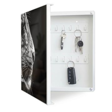 Bringe Ordnung und Eleganz in deinen Eingangsbereich mit dem banjado Schlüsselkasten Motiv Motiv Pauline. Die moderne Schlüsselbox kombiniert funktionales Design mit hochwertiger Verarbeitung und wird so zu einem echten Hingucker in Flur, Büro oder Ferienwohnung. ✅ Stilvolle Schlüsselaufbewahrung mit Motiv Motiv Pauline Der Design-Schlüsselkasten Motiv Motiv Pauline bietet Platz für bis zu 32 Schlüssel, die auf 4 stabilen Reihen mit je 8 Haken übersichtlich verstaut werden. Mit seinen kompakten Maßen von 30 x 30 x 5 cm passt die Schlüsselbox perfekt auch in kleinere Räume. Der weiß lackierte Stahlkorpus mit links angeschlagenem Türscharnier harmoniert mit gedruckten Folie auf der Front und fügt sich nahtlos in jedes Wohnambiente ein. Ob als Schlüsselorganizer für Zuhause oder als praktische Lösung für Büros, Praxen und Gewerbe, der banjado Schlüsselkasten sorgt für Ordnung und Übersicht. Dank der magnetischen, mit Kreidestiften beschreibbaren Folie auf der Front kannst du Notizen anheften oder Termine direkt auf der Oberfläche festhalten. Die Schlüsselbox Motiv Motiv Pauline zur Wandmontage wird inklusive Befestigungsmaterial geliefert und ist schnell angebracht. So hast du deine Schlüssel jederzeit griffbereit und zugleich stilvoll verstaut. Mit diesem banjado Schlüsselkasten Motiv Motiv Pauline kombinierst du praktische Aufbewahrung mit stilvollem Wohndesign. Ob privat oder geschäftlich, die Schlüsselbox sorgt für mehr Ordnung, Übersicht und ein wohnliches Ambiente.Vorteile im Überblick