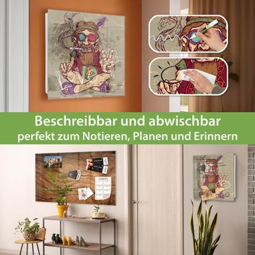 Bringe Ordnung und Eleganz in deinen Eingangsbereich mit dem banjado Schlüsselkasten Motiv Motiv Peace. Die moderne Schlüsselbox kombiniert funktionales Design mit hochwertiger Verarbeitung und wird so zu einem echten Hingucker in Flur, Büro oder Ferienwohnung. ✅ Stilvolle Schlüsselaufbewahrung mit Glasfront im Motiv Motiv Peace Der Design-Schlüsselkasten Motiv Motiv Peace bietet Platz für bis zu 50 Schlüssel, die auf 5 stabilen Reihen mit je 10 Haken übersichtlich verstaut werden. Mit seinen kompakten Maßen von 30 x 30 x 5 cm passt die Schlüsselbox perfekt auch in kleinere Räume. Der weiß lackierte Stahlkorpus mit rechts angeschlagenem Türscharnier harmoniert mit der Glasfront und fügt sich nahtlos in jedes Wohnambiente ein. Ob als Schlüsselorganizer für Zuhause oder als praktische Lösung für Büros, Praxen und Gewerbe, der banjado Schlüsselkasten sorgt für Ordnung und Übersicht. Dank der magnetischen, mit Kreidestiften beschreibbaren Glasfront kannst du Notizen anheften oder Termine direkt auf der Oberfläche festhalten. Die Schlüsselbox Motiv Motiv Peace zur Wandmontage wird inklusive Befestigungsmaterial geliefert und ist schnell angebracht. So hast du deine Schlüssel jederzeit griffbereit und zugleich stilvoll verstaut. Mit diesem banjado Schlüsselkasten Motiv Motiv Peace kombinierst du praktische Aufbewahrung mit stilvollem Wohndesign. Ob privat oder geschäftlich, die Schlüsselbox sorgt für mehr Ordnung, Übersicht und ein wohnliches Ambiente.Vorteile im Überblick