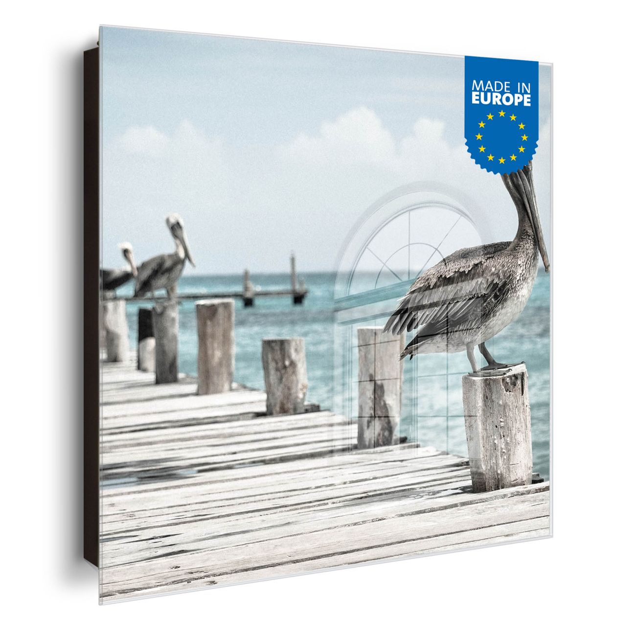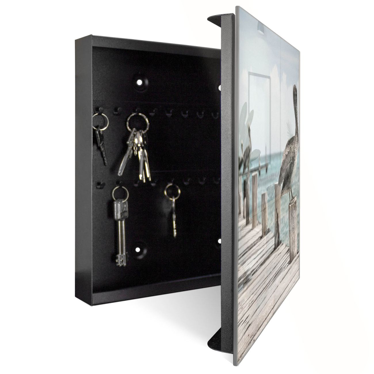Schlüsselkasten Glas Motiv Pelikane