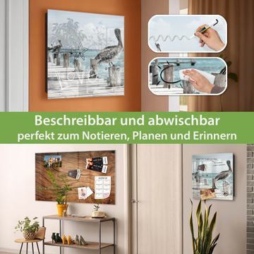 Bringe Ordnung und Eleganz in deinen Eingangsbereich mit dem banjado Schlüsselkasten Motiv Motiv Pelikane. Die moderne Schlüsselbox kombiniert funktionales Design mit hochwertiger Verarbeitung und wird so zu einem echten Hingucker in Flur, Büro oder Ferienwohnung. ✅ Stilvolle Schlüsselaufbewahrung mit Glasfront im Motiv Motiv Pelikane Der Design-Schlüsselkasten Motiv Motiv Pelikane bietet Platz für bis zu 50 Schlüssel, die auf 5 stabilen Reihen mit je 10 Haken übersichtlich verstaut werden. Mit seinen kompakten Maßen von 30 x 30 x 5 cm passt die Schlüsselbox perfekt auch in kleinere Räume. Der schwarz lackierte Stahlkorpus mit rechts angeschlagenem Türscharnier harmoniert mit der Glasfront und fügt sich nahtlos in jedes Wohnambiente ein. Ob als Schlüsselorganizer für Zuhause oder als praktische Lösung für Büros, Praxen und Gewerbe, der banjado Schlüsselkasten sorgt für Ordnung und Übersicht. Dank der magnetischen, mit Kreidestiften beschreibbaren Glasfront kannst du Notizen anheften oder Termine direkt auf der Oberfläche festhalten. Die Schlüsselbox Motiv Motiv Pelikane zur Wandmontage wird inklusive Befestigungsmaterial geliefert und ist schnell angebracht. So hast du deine Schlüssel jederzeit griffbereit und zugleich stilvoll verstaut. Mit diesem banjado Schlüsselkasten Motiv Motiv Pelikane kombinierst du praktische Aufbewahrung mit stilvollem Wohndesign. Ob privat oder geschäftlich, die Schlüsselbox sorgt für mehr Ordnung, Übersicht und ein wohnliches Ambiente.Vorteile im Überblick