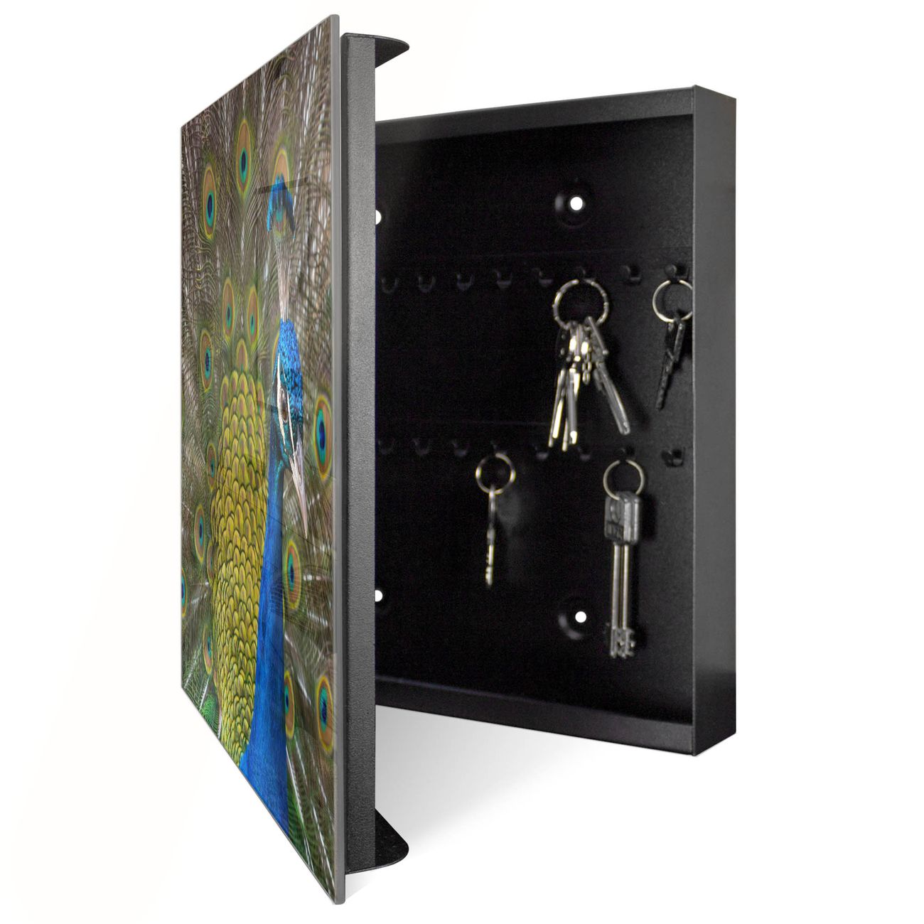 Schlüsselkasten Glas Motiv Pfau
