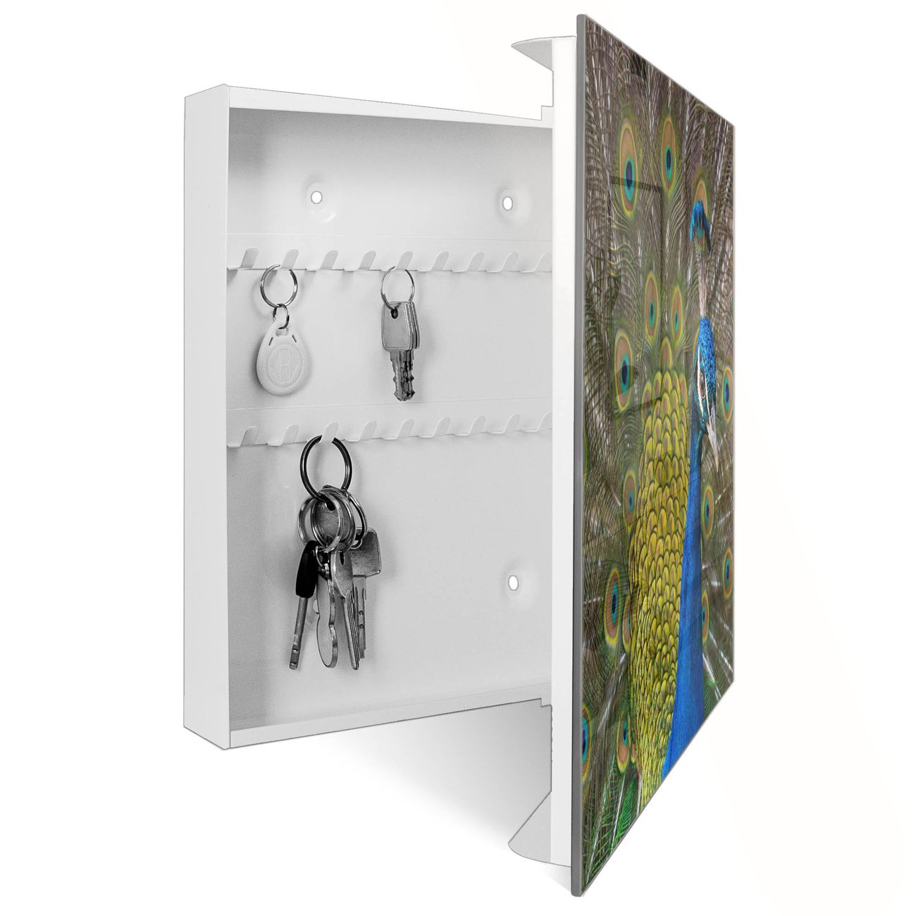 Schlüsselkasten Glas Motiv Pfau