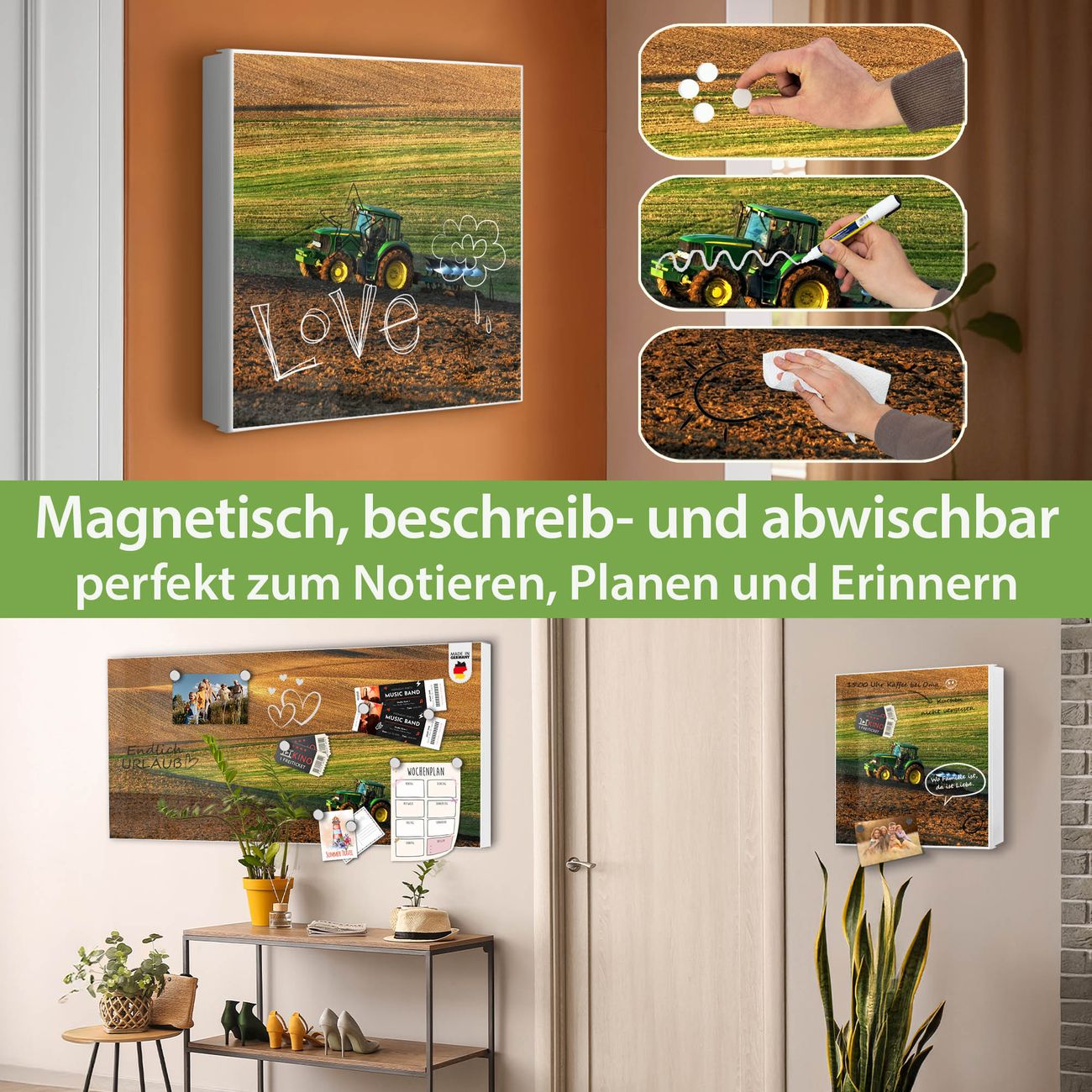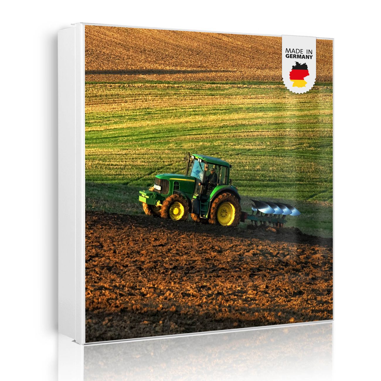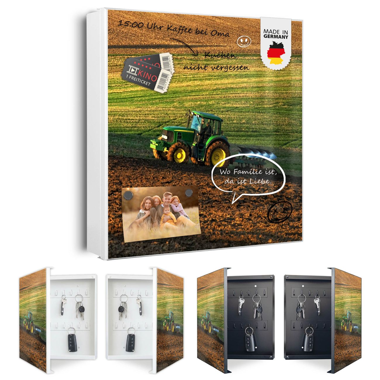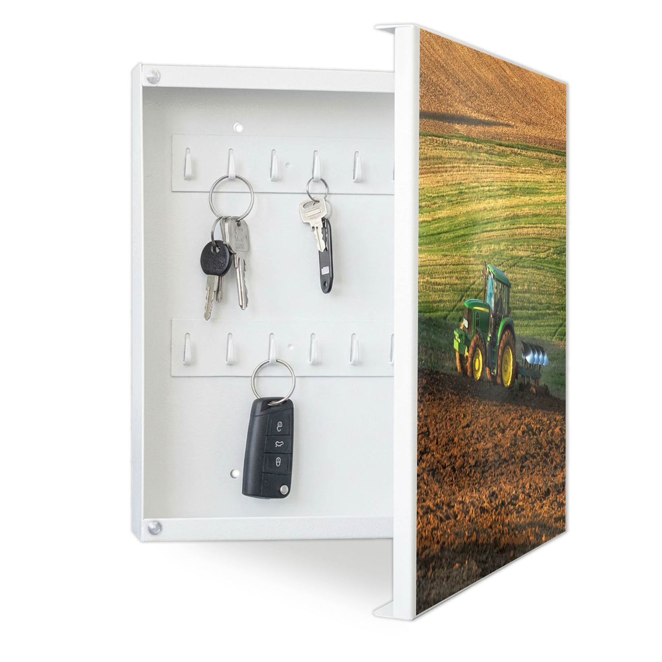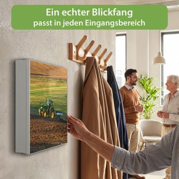 Bringe Ordnung und Eleganz in deinen Eingangsbereich mit dem banjado Schlüsselkasten Motiv Motiv Pflügen. Die moderne Schlüsselbox kombiniert funktionales Design mit hochwertiger Verarbeitung und wird so zu einem echten Hingucker in Flur, Büro oder Ferienwohnung. ✅ Stilvolle Schlüsselaufbewahrung mit Motiv Motiv Pflügen Der Design-Schlüsselkasten Motiv Motiv Pflügen bietet Platz für bis zu 32 Schlüssel, die auf 4 stabilen Reihen mit je 8 Haken übersichtlich verstaut werden. Mit seinen kompakten Maßen von 30 x 30 x 5 cm passt die Schlüsselbox perfekt auch in kleinere Räume. Der weiß lackierte Stahlkorpus mit rechts angeschlagenem Türscharnier harmoniert mit gedruckten Folie auf der Front und fügt sich nahtlos in jedes Wohnambiente ein. Ob als Schlüsselorganizer für Zuhause oder als praktische Lösung für Büros, Praxen und Gewerbe, der banjado Schlüsselkasten sorgt für Ordnung und Übersicht. Dank der magnetischen, mit Kreidestiften beschreibbaren Folie auf der Front kannst du Notizen anheften oder Termine direkt auf der Oberfläche festhalten. Die Schlüsselbox Motiv Motiv Pflügen zur Wandmontage wird inklusive Befestigungsmaterial geliefert und ist schnell angebracht. So hast du deine Schlüssel jederzeit griffbereit und zugleich stilvoll verstaut. Mit diesem banjado Schlüsselkasten Motiv Motiv Pflügen kombinierst du praktische Aufbewahrung mit stilvollem Wohndesign. Ob privat oder geschäftlich, die Schlüsselbox sorgt für mehr Ordnung, Übersicht und ein wohnliches Ambiente.Vorteile im Überblick