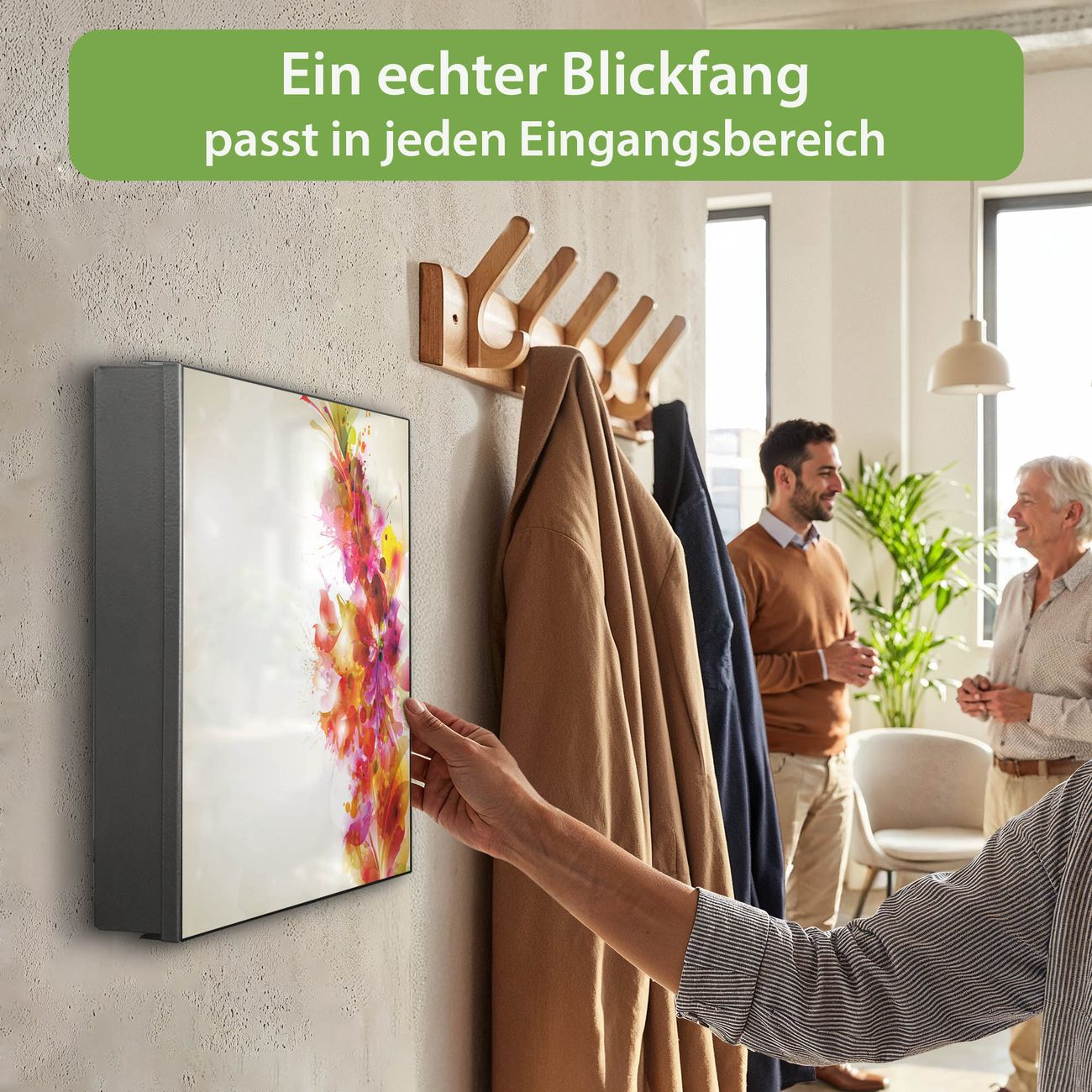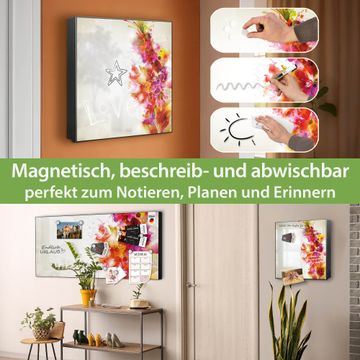 Bringe Ordnung und Eleganz in deinen Eingangsbereich mit dem banjado Schlüsselkasten Motiv Motiv Pink Explosion. Die moderne Schlüsselbox kombiniert funktionales Design mit hochwertiger Verarbeitung und wird so zu einem echten Hingucker in Flur, Büro oder Ferienwohnung. ✅ Stilvolle Schlüsselaufbewahrung mit Motiv Motiv Pink Explosion Der Design-Schlüsselkasten Motiv Motiv Pink Explosion bietet Platz für bis zu 32 Schlüssel, die auf 4 stabilen Reihen mit je 8 Haken übersichtlich verstaut werden. Mit seinen kompakten Maßen von 30 x 30 x 5 cm passt die Schlüsselbox perfekt auch in kleinere Räume. Der schwarz lackierte Stahlkorpus mit links angeschlagenem Türscharnier harmoniert mit gedruckten Folie auf der Front und fügt sich nahtlos in jedes Wohnambiente ein. Ob als Schlüsselorganizer für Zuhause oder als praktische Lösung für Büros, Praxen und Gewerbe, der banjado Schlüsselkasten sorgt für Ordnung und Übersicht. Dank der magnetischen, mit Kreidestiften beschreibbaren Folie auf der Front kannst du Notizen anheften oder Termine direkt auf der Oberfläche festhalten. Die Schlüsselbox Motiv Motiv Pink Explosion zur Wandmontage wird inklusive Befestigungsmaterial geliefert und ist schnell angebracht. So hast du deine Schlüssel jederzeit griffbereit und zugleich stilvoll verstaut. Mit diesem banjado Schlüsselkasten Motiv Motiv Pink Explosion kombinierst du praktische Aufbewahrung mit stilvollem Wohndesign. Ob privat oder geschäftlich, die Schlüsselbox sorgt für mehr Ordnung, Übersicht und ein wohnliches Ambiente.Vorteile im Überblick