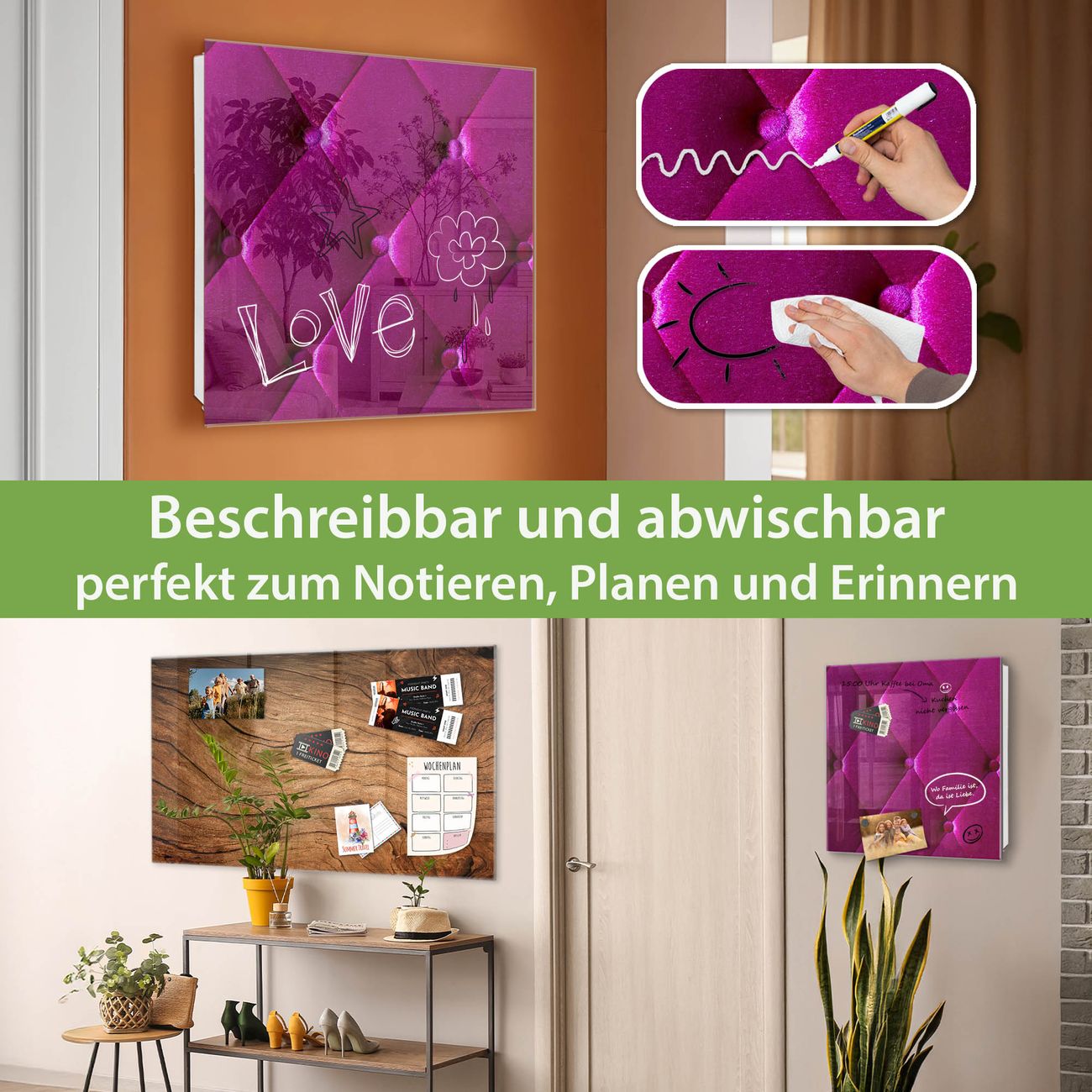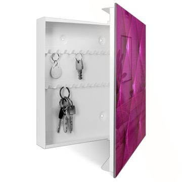 Bringe Ordnung und Eleganz in deinen Eingangsbereich mit dem banjado Schlüsselkasten Motiv Motiv Pink Polster. Die moderne Schlüsselbox kombiniert funktionales Design mit hochwertiger Verarbeitung und wird so zu einem echten Hingucker in Flur, Büro oder Ferienwohnung. ✅ Stilvolle Schlüsselaufbewahrung mit Glasfront im Motiv Motiv Pink Polster Der Design-Schlüsselkasten Motiv Motiv Pink Polster bietet Platz für bis zu 50 Schlüssel, die auf 5 stabilen Reihen mit je 10 Haken übersichtlich verstaut werden. Mit seinen kompakten Maßen von 30 x 30 x 5 cm passt die Schlüsselbox perfekt auch in kleinere Räume. Der weiß lackierte Stahlkorpus mit rechts angeschlagenem Türscharnier harmoniert mit der Glasfront und fügt sich nahtlos in jedes Wohnambiente ein. Ob als Schlüsselorganizer für Zuhause oder als praktische Lösung für Büros, Praxen und Gewerbe, der banjado Schlüsselkasten sorgt für Ordnung und Übersicht. Dank der magnetischen, mit Kreidestiften beschreibbaren Glasfront kannst du Notizen anheften oder Termine direkt auf der Oberfläche festhalten. Die Schlüsselbox Motiv Motiv Pink Polster zur Wandmontage wird inklusive Befestigungsmaterial geliefert und ist schnell angebracht. So hast du deine Schlüssel jederzeit griffbereit und zugleich stilvoll verstaut. Mit diesem banjado Schlüsselkasten Motiv Motiv Pink Polster kombinierst du praktische Aufbewahrung mit stilvollem Wohndesign. Ob privat oder geschäftlich, die Schlüsselbox sorgt für mehr Ordnung, Übersicht und ein wohnliches Ambiente.Vorteile im Überblick