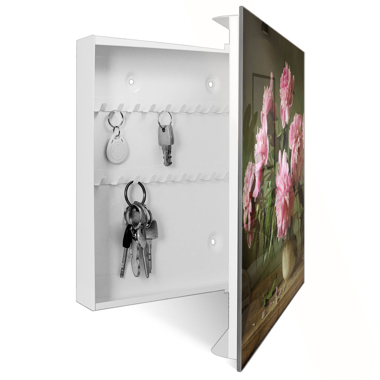 Schlüsselkasten Glas Motiv Pinke Pfingstrosen