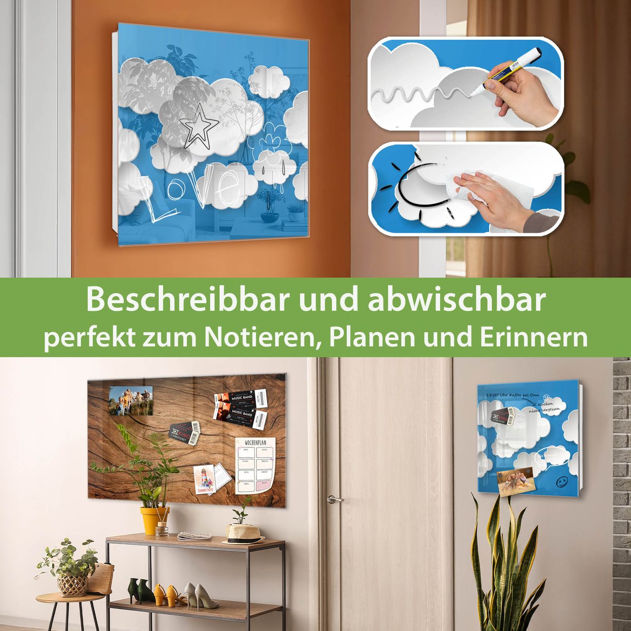✅ Magnetisch und mit Kreidestift beschreibbar, gehärtetes Glas, rechts angeschlagene TürOrdnung und Design in einem