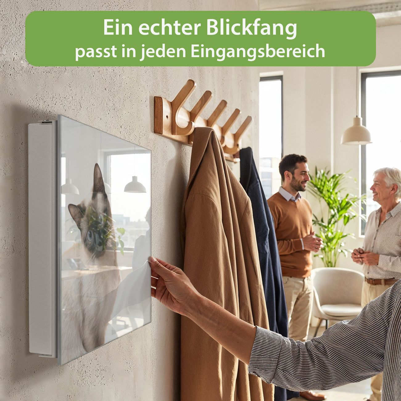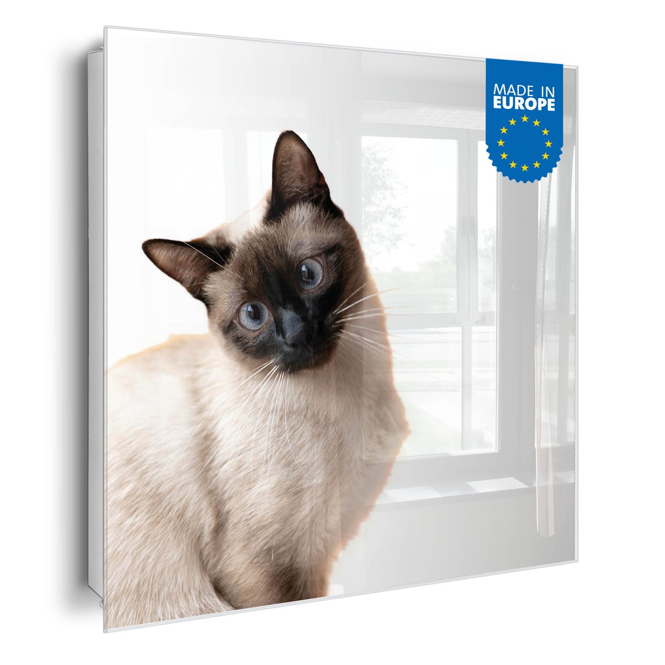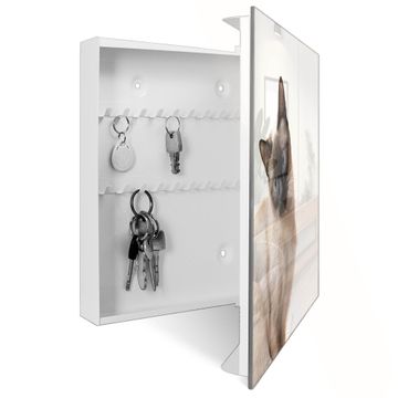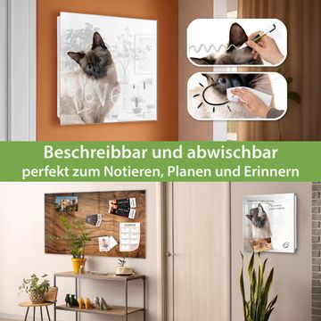 Bringe Ordnung und Eleganz in deinen Eingangsbereich mit dem banjado Schlüsselkasten Motiv Motiv Porträt einer Siamkatze. Die moderne Schlüsselbox kombiniert funktionales Design mit hochwertiger Verarbeitung und wird so zu einem echten Hingucker in Flur, Büro oder Ferienwohnung. ✅ Stilvolle Schlüsselaufbewahrung mit Glasfront im Motiv Motiv Porträt einer Siamkatze Der Design-Schlüsselkasten Motiv Motiv Porträt einer Siamkatze bietet Platz für bis zu 50 Schlüssel, die auf 5 stabilen Reihen mit je 10 Haken übersichtlich verstaut werden. Mit seinen kompakten Maßen von 30 x 30 x 5 cm passt die Schlüsselbox perfekt auch in kleinere Räume. Der weiß lackierte Stahlkorpus mit rechts angeschlagenem Türscharnier harmoniert mit der Glasfront und fügt sich nahtlos in jedes Wohnambiente ein. Ob als Schlüsselorganizer für Zuhause oder als praktische Lösung für Büros, Praxen und Gewerbe, der banjado Schlüsselkasten sorgt für Ordnung und Übersicht. Dank der magnetischen, mit Kreidestiften beschreibbaren Glasfront kannst du Notizen anheften oder Termine direkt auf der Oberfläche festhalten. Die Schlüsselbox Motiv Motiv Porträt einer Siamkatze zur Wandmontage wird inklusive Befestigungsmaterial geliefert und ist schnell angebracht. So hast du deine Schlüssel jederzeit griffbereit und zugleich stilvoll verstaut. Mit diesem banjado Schlüsselkasten Motiv Motiv Porträt einer Siamkatze kombinierst du praktische Aufbewahrung mit stilvollem Wohndesign. Ob privat oder geschäftlich, die Schlüsselbox sorgt für mehr Ordnung, Übersicht und ein wohnliches Ambiente.Vorteile im Überblick