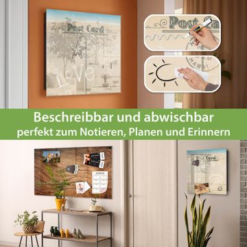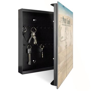 Bringe Ordnung und Eleganz in deinen Eingangsbereich mit dem banjado Schlüsselkasten Motiv Motiv Postkarte. Die moderne Schlüsselbox kombiniert funktionales Design mit hochwertiger Verarbeitung und wird so zu einem echten Hingucker in Flur, Büro oder Ferienwohnung. ✅ Stilvolle Schlüsselaufbewahrung mit Glasfront im Motiv Motiv Postkarte Der Design-Schlüsselkasten Motiv Motiv Postkarte bietet Platz für bis zu 50 Schlüssel, die auf 5 stabilen Reihen mit je 10 Haken übersichtlich verstaut werden. Mit seinen kompakten Maßen von 30 x 30 x 5 cm passt die Schlüsselbox perfekt auch in kleinere Räume. Der schwarz lackierte Stahlkorpus mit rechts angeschlagenem Türscharnier harmoniert mit der Glasfront und fügt sich nahtlos in jedes Wohnambiente ein. Ob als Schlüsselorganizer für Zuhause oder als praktische Lösung für Büros, Praxen und Gewerbe, der banjado Schlüsselkasten sorgt für Ordnung und Übersicht. Dank der magnetischen, mit Kreidestiften beschreibbaren Glasfront kannst du Notizen anheften oder Termine direkt auf der Oberfläche festhalten. Die Schlüsselbox Motiv Motiv Postkarte zur Wandmontage wird inklusive Befestigungsmaterial geliefert und ist schnell angebracht. So hast du deine Schlüssel jederzeit griffbereit und zugleich stilvoll verstaut. Mit diesem banjado Schlüsselkasten Motiv Motiv Postkarte kombinierst du praktische Aufbewahrung mit stilvollem Wohndesign. Ob privat oder geschäftlich, die Schlüsselbox sorgt für mehr Ordnung, Übersicht und ein wohnliches Ambiente.Vorteile im Überblick
