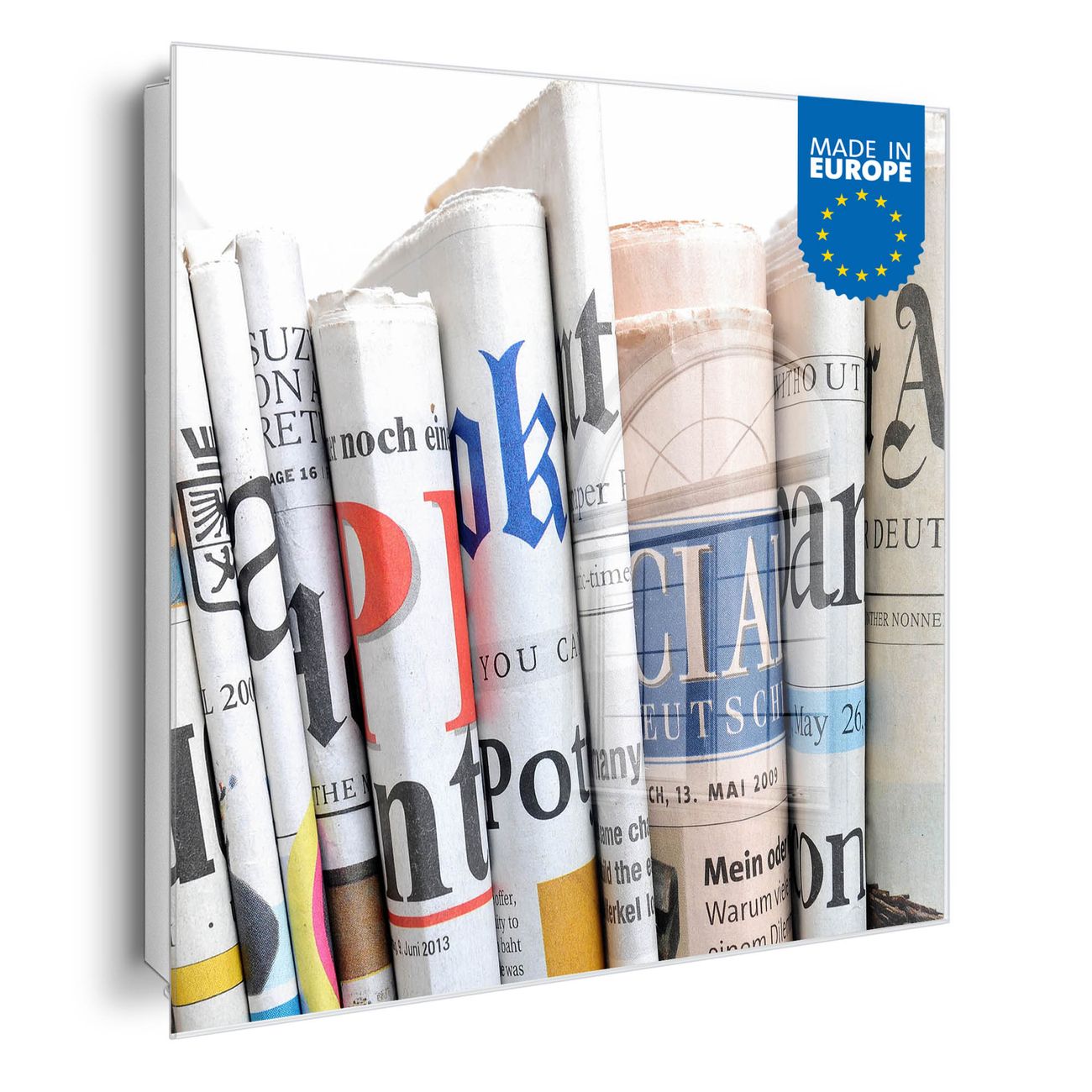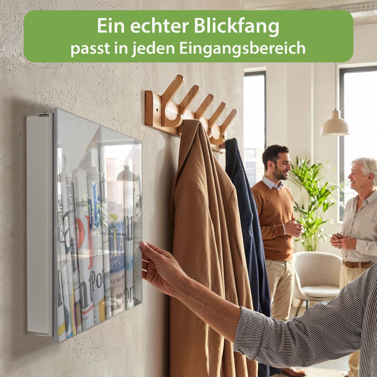 Bringe Ordnung und Eleganz in deinen Eingangsbereich mit dem banjado Schlüsselkasten Motiv Motiv Presse. Die moderne Schlüsselbox kombiniert funktionales Design mit hochwertiger Verarbeitung und wird so zu einem echten Hingucker in Flur, Büro oder Ferienwohnung. ✅ Stilvolle Schlüsselaufbewahrung mit Glasfront im Motiv Motiv Presse Der Design-Schlüsselkasten Motiv Motiv Presse bietet Platz für bis zu 50 Schlüssel, die auf 5 stabilen Reihen mit je 10 Haken übersichtlich verstaut werden. Mit seinen kompakten Maßen von 30 x 30 x 5 cm passt die Schlüsselbox perfekt auch in kleinere Räume. Der weiß lackierte Stahlkorpus mit rechts angeschlagenem Türscharnier harmoniert mit der Glasfront und fügt sich nahtlos in jedes Wohnambiente ein. Ob als Schlüsselorganizer für Zuhause oder als praktische Lösung für Büros, Praxen und Gewerbe, der banjado Schlüsselkasten sorgt für Ordnung und Übersicht. Dank der magnetischen, mit Kreidestiften beschreibbaren Glasfront kannst du Notizen anheften oder Termine direkt auf der Oberfläche festhalten. Die Schlüsselbox Motiv Motiv Presse zur Wandmontage wird inklusive Befestigungsmaterial geliefert und ist schnell angebracht. So hast du deine Schlüssel jederzeit griffbereit und zugleich stilvoll verstaut. Mit diesem banjado Schlüsselkasten Motiv Motiv Presse kombinierst du praktische Aufbewahrung mit stilvollem Wohndesign. Ob privat oder geschäftlich, die Schlüsselbox sorgt für mehr Ordnung, Übersicht und ein wohnliches Ambiente.Vorteile im Überblick