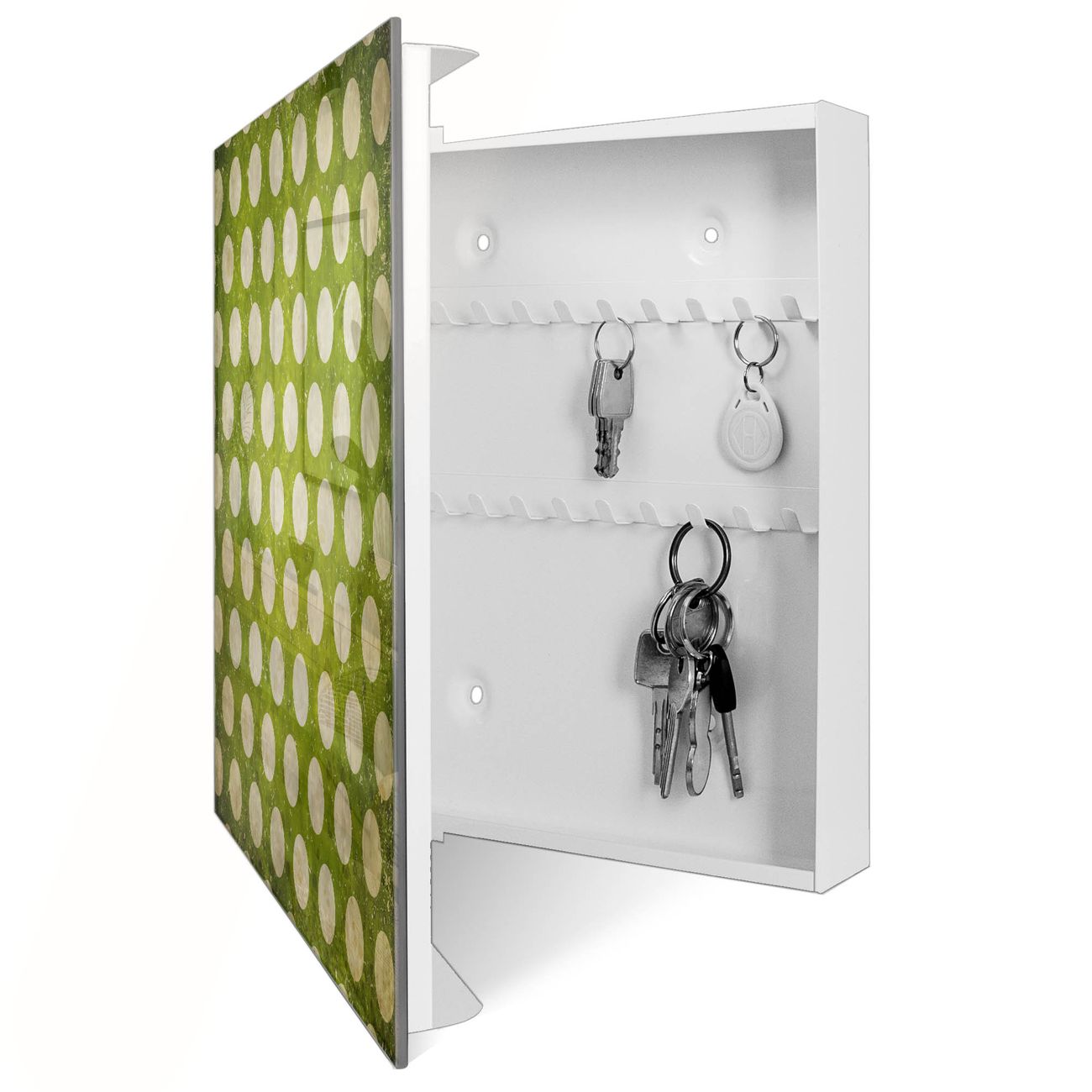 Schlüsselkasten Glas Motiv Punkte Grün Vintage