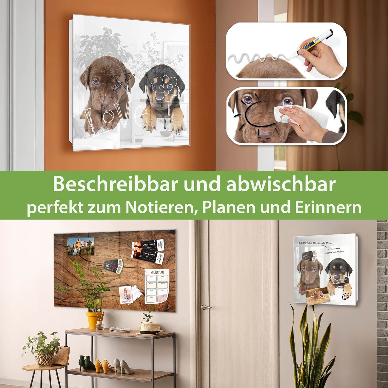 ✅ Magnetisch und mit Kreidestift beschreibbar, gehärtetes Glas, rechts angeschlagene TürOrdnung und Design in einem