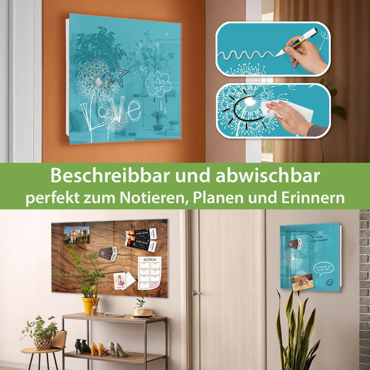 ✅ Magnetisch und mit Kreidestift beschreibbar, gehärtetes Glas, rechts angeschlagene TürOrdnung und Design in einem