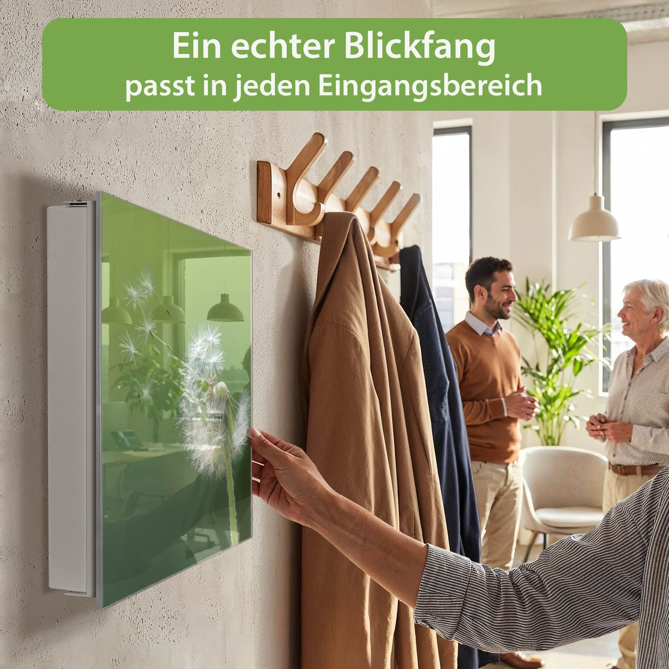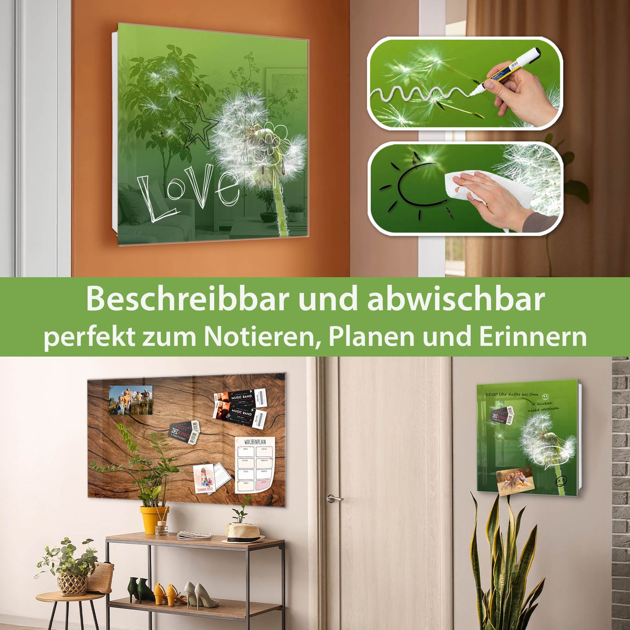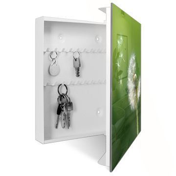 Bringe Ordnung und Eleganz in deinen Eingangsbereich mit dem banjado Schlüsselkasten Motiv Motiv Pusteblume. Die moderne Schlüsselbox kombiniert funktionales Design mit hochwertiger Verarbeitung und wird so zu einem echten Hingucker in Flur, Büro oder Ferienwohnung. ✅ Stilvolle Schlüsselaufbewahrung mit Glasfront im Motiv Motiv Pusteblume Der Design-Schlüsselkasten Motiv Motiv Pusteblume bietet Platz für bis zu 50 Schlüssel, die auf 5 stabilen Reihen mit je 10 Haken übersichtlich verstaut werden. Mit seinen kompakten Maßen von 30 x 30 x 5 cm passt die Schlüsselbox perfekt auch in kleinere Räume. Der weiß lackierte Stahlkorpus mit rechts angeschlagenem Türscharnier harmoniert mit der Glasfront und fügt sich nahtlos in jedes Wohnambiente ein. Ob als Schlüsselorganizer für Zuhause oder als praktische Lösung für Büros, Praxen und Gewerbe, der banjado Schlüsselkasten sorgt für Ordnung und Übersicht. Dank der magnetischen, mit Kreidestiften beschreibbaren Glasfront kannst du Notizen anheften oder Termine direkt auf der Oberfläche festhalten. Die Schlüsselbox Motiv Motiv Pusteblume zur Wandmontage wird inklusive Befestigungsmaterial geliefert und ist schnell angebracht. So hast du deine Schlüssel jederzeit griffbereit und zugleich stilvoll verstaut. Mit diesem banjado Schlüsselkasten Motiv Motiv Pusteblume kombinierst du praktische Aufbewahrung mit stilvollem Wohndesign. Ob privat oder geschäftlich, die Schlüsselbox sorgt für mehr Ordnung, Übersicht und ein wohnliches Ambiente.Vorteile im Überblick