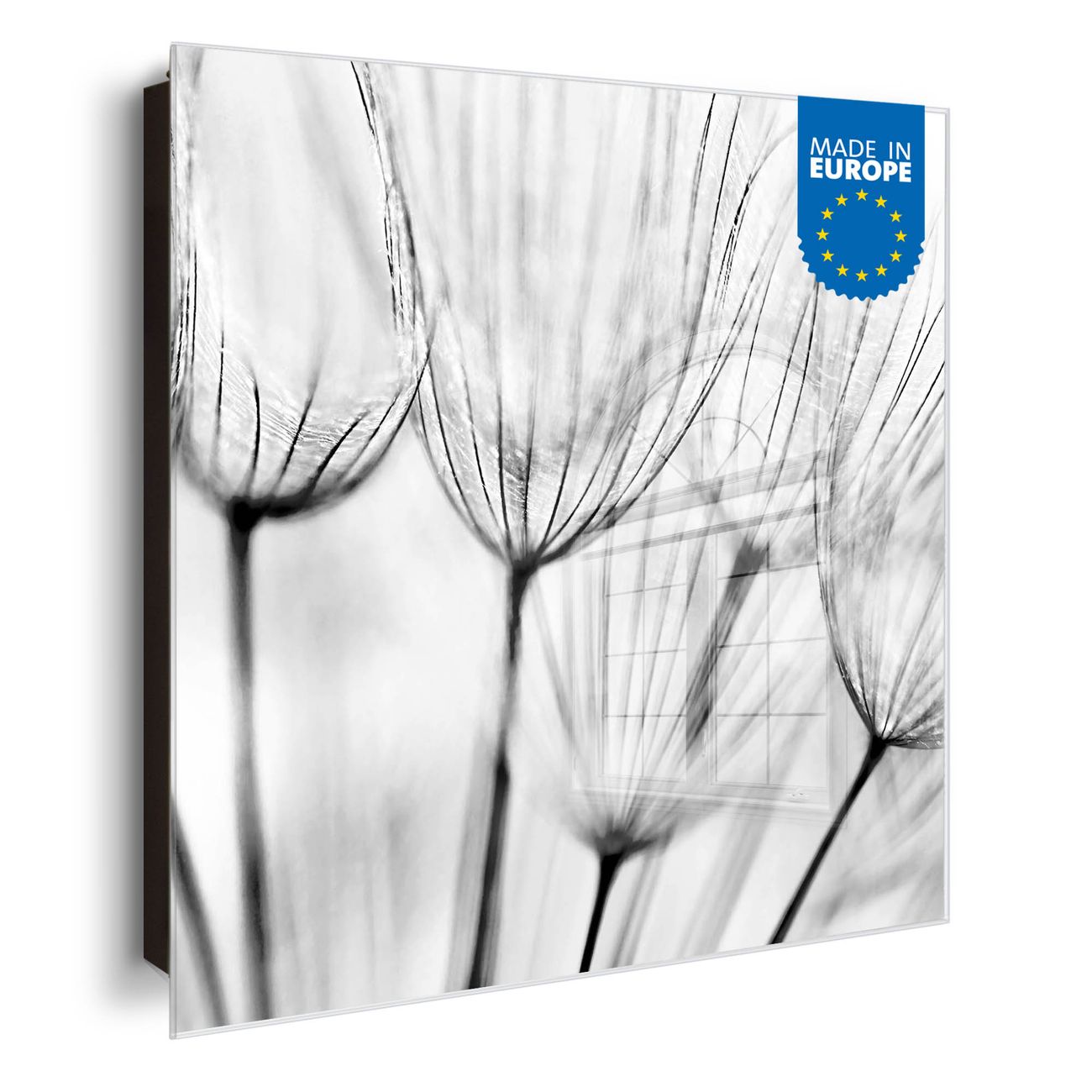 Bringe Ordnung und Eleganz in deinen Eingangsbereich mit dem banjado Schlüsselkasten Motiv Motiv Pusteblumen SW. Die moderne Schlüsselbox kombiniert funktionales Design mit hochwertiger Verarbeitung und wird so zu einem echten Hingucker in Flur, Büro oder Ferienwohnung. ✅ Stilvolle Schlüsselaufbewahrung mit Glasfront im Motiv Motiv Pusteblumen SW Der Design-Schlüsselkasten Motiv Motiv Pusteblumen SW bietet Platz für bis zu 50 Schlüssel, die auf 5 stabilen Reihen mit je 10 Haken übersichtlich verstaut werden. Mit seinen kompakten Maßen von 30 x 30 x 5 cm passt die Schlüsselbox perfekt auch in kleinere Räume. Der schwarz lackierte Stahlkorpus mit rechts angeschlagenem Türscharnier harmoniert mit der Glasfront und fügt sich nahtlos in jedes Wohnambiente ein. Ob als Schlüsselorganizer für Zuhause oder als praktische Lösung für Büros, Praxen und Gewerbe, der banjado Schlüsselkasten sorgt für Ordnung und Übersicht. Dank der magnetischen, mit Kreidestiften beschreibbaren Glasfront kannst du Notizen anheften oder Termine direkt auf der Oberfläche festhalten. Die Schlüsselbox Motiv Motiv Pusteblumen SW zur Wandmontage wird inklusive Befestigungsmaterial geliefert und ist schnell angebracht. So hast du deine Schlüssel jederzeit griffbereit und zugleich stilvoll verstaut. Mit diesem banjado Schlüsselkasten Motiv Motiv Pusteblumen SW kombinierst du praktische Aufbewahrung mit stilvollem Wohndesign. Ob privat oder geschäftlich, die Schlüsselbox sorgt für mehr Ordnung, Übersicht und ein wohnliches Ambiente.Vorteile im Überblick
