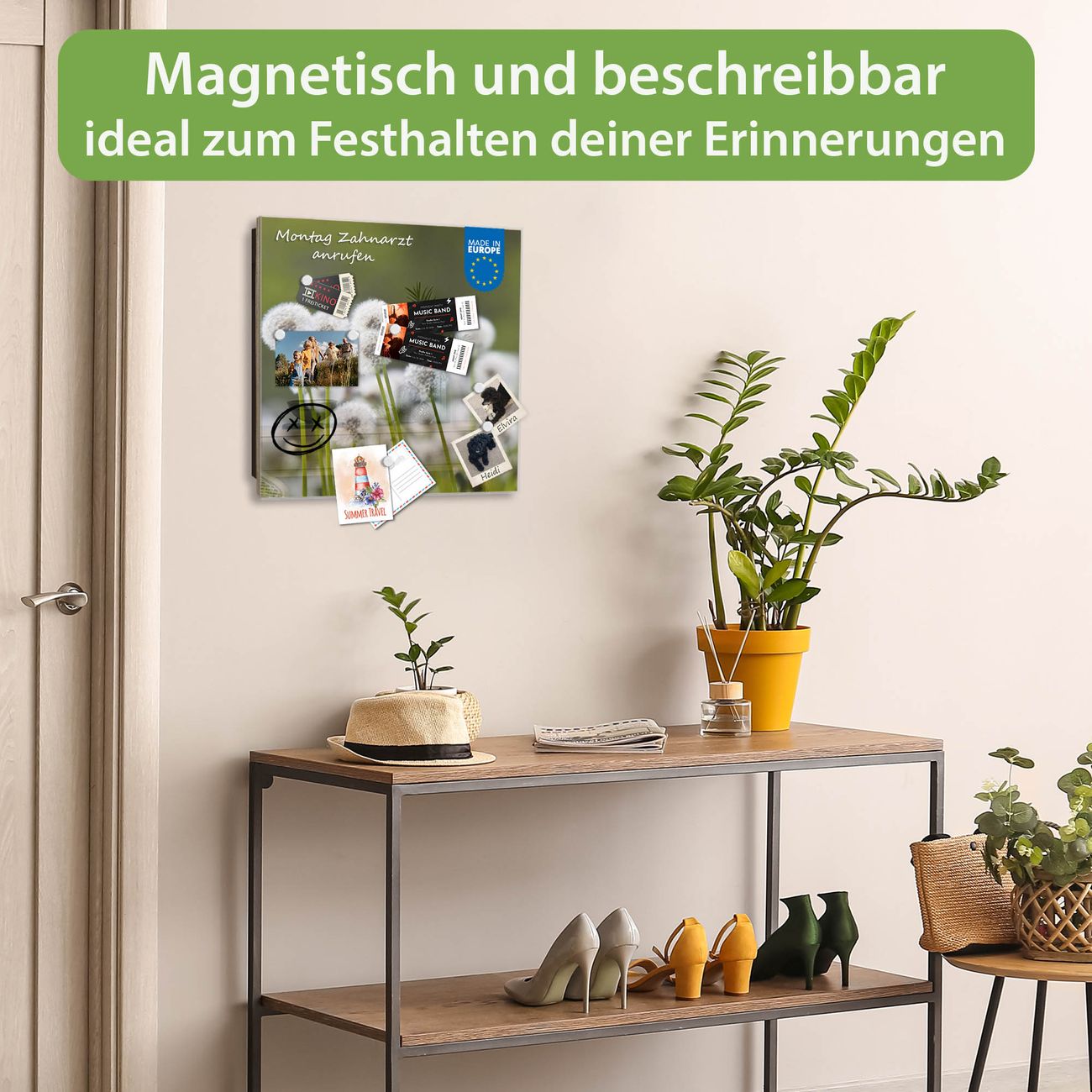 ✅ Magnetisch und mit Kreidestift beschreibbar, gehärtetes Glas, rechts angeschlagene TürOrdnung und Design in einem