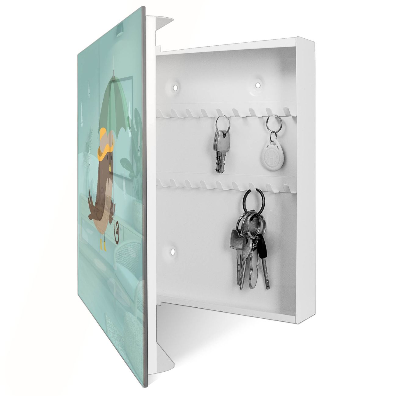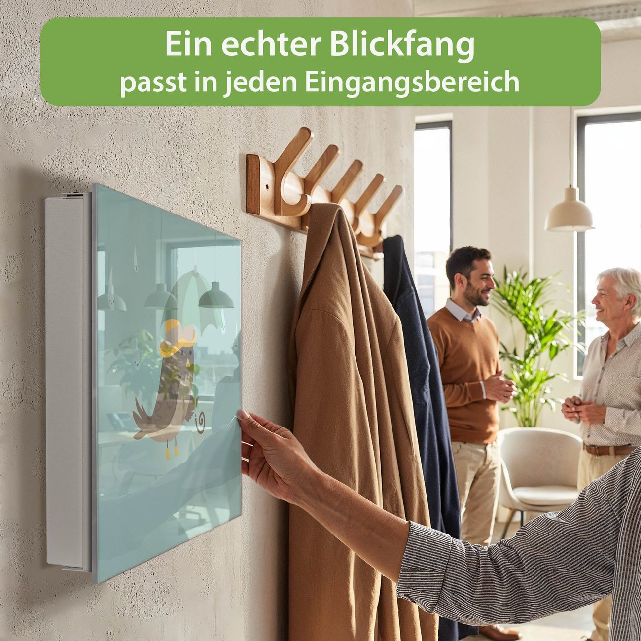 Bringe Ordnung und Eleganz in deinen Eingangsbereich mit dem banjado Schlüsselkasten Motiv Motiv Rainbird. Die moderne Schlüsselbox kombiniert funktionales Design mit hochwertiger Verarbeitung und wird so zu einem echten Hingucker in Flur, Büro oder Ferienwohnung. ✅ Stilvolle Schlüsselaufbewahrung mit Glasfront im Motiv Motiv Rainbird Der Design-Schlüsselkasten Motiv Motiv Rainbird bietet Platz für bis zu 50 Schlüssel, die auf 5 stabilen Reihen mit je 10 Haken übersichtlich verstaut werden. Mit seinen kompakten Maßen von 30 x 30 x 5 cm passt die Schlüsselbox perfekt auch in kleinere Räume. Der weiß lackierte Stahlkorpus mit rechts angeschlagenem Türscharnier harmoniert mit der Glasfront und fügt sich nahtlos in jedes Wohnambiente ein. Ob als Schlüsselorganizer für Zuhause oder als praktische Lösung für Büros, Praxen und Gewerbe, der banjado Schlüsselkasten sorgt für Ordnung und Übersicht. Dank der magnetischen, mit Kreidestiften beschreibbaren Glasfront kannst du Notizen anheften oder Termine direkt auf der Oberfläche festhalten. Die Schlüsselbox Motiv Motiv Rainbird zur Wandmontage wird inklusive Befestigungsmaterial geliefert und ist schnell angebracht. So hast du deine Schlüssel jederzeit griffbereit und zugleich stilvoll verstaut. Mit diesem banjado Schlüsselkasten Motiv Motiv Rainbird kombinierst du praktische Aufbewahrung mit stilvollem Wohndesign. Ob privat oder geschäftlich, die Schlüsselbox sorgt für mehr Ordnung, Übersicht und ein wohnliches Ambiente.Vorteile im Überblick
