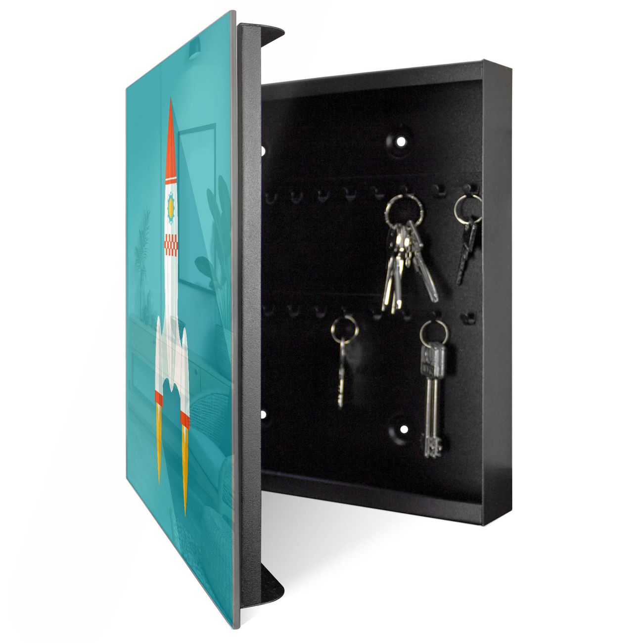 Schlüsselkasten Glas Motiv Rakete