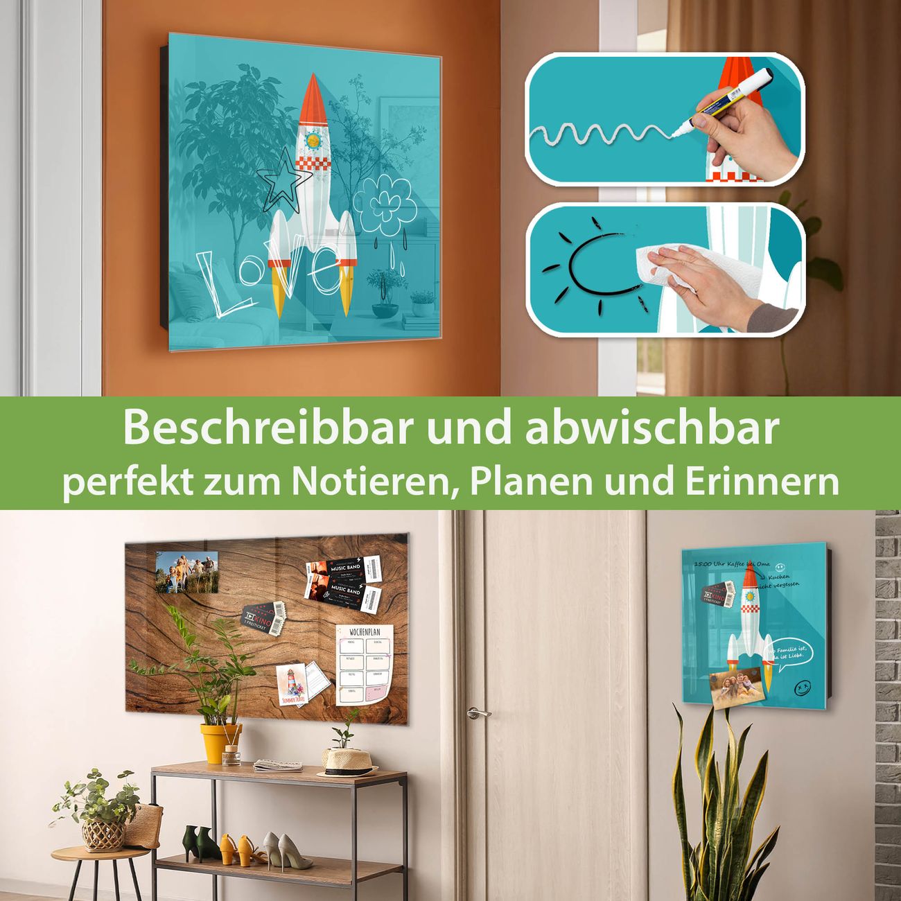 ✅ Magnetisch und mit Kreidestift beschreibbar, gehärtetes Glas, links angeschlagene TürOrdnung und Design in einem