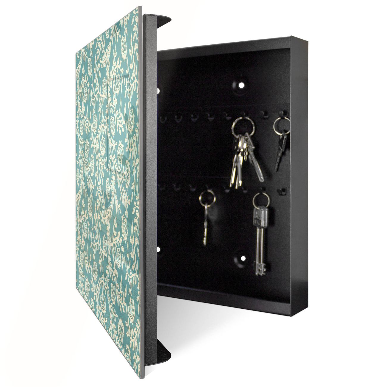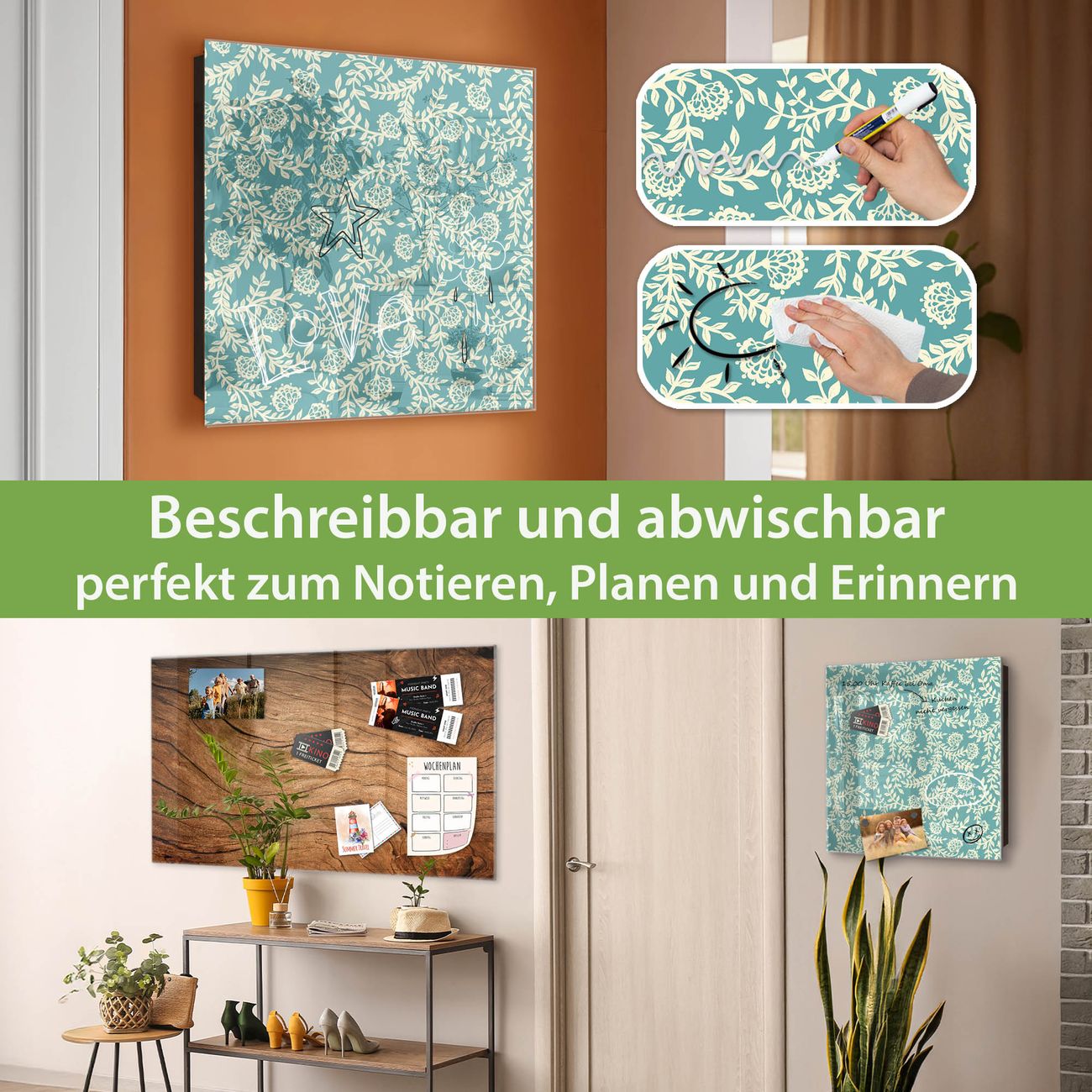 Bringe Ordnung und Eleganz in deinen Eingangsbereich mit dem banjado Schlüsselkasten Motiv Motiv Rankenornament. Die moderne Schlüsselbox kombiniert funktionales Design mit hochwertiger Verarbeitung und wird so zu einem echten Hingucker in Flur, Büro oder Ferienwohnung. ✅ Stilvolle Schlüsselaufbewahrung mit Glasfront im Motiv Motiv Rankenornament Der Design-Schlüsselkasten Motiv Motiv Rankenornament bietet Platz für bis zu 50 Schlüssel, die auf 5 stabilen Reihen mit je 10 Haken übersichtlich verstaut werden. Mit seinen kompakten Maßen von 30 x 30 x 5 cm passt die Schlüsselbox perfekt auch in kleinere Räume. Der schwarz lackierte Stahlkorpus mit rechts angeschlagenem Türscharnier harmoniert mit der Glasfront und fügt sich nahtlos in jedes Wohnambiente ein. Ob als Schlüsselorganizer für Zuhause oder als praktische Lösung für Büros, Praxen und Gewerbe, der banjado Schlüsselkasten sorgt für Ordnung und Übersicht. Dank der magnetischen, mit Kreidestiften beschreibbaren Glasfront kannst du Notizen anheften oder Termine direkt auf der Oberfläche festhalten. Die Schlüsselbox Motiv Motiv Rankenornament zur Wandmontage wird inklusive Befestigungsmaterial geliefert und ist schnell angebracht. So hast du deine Schlüssel jederzeit griffbereit und zugleich stilvoll verstaut. Mit diesem banjado Schlüsselkasten Motiv Motiv Rankenornament kombinierst du praktische Aufbewahrung mit stilvollem Wohndesign. Ob privat oder geschäftlich, die Schlüsselbox sorgt für mehr Ordnung, Übersicht und ein wohnliches Ambiente.Vorteile im Überblick