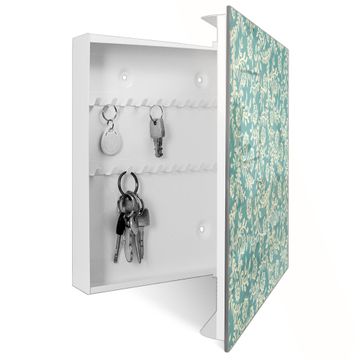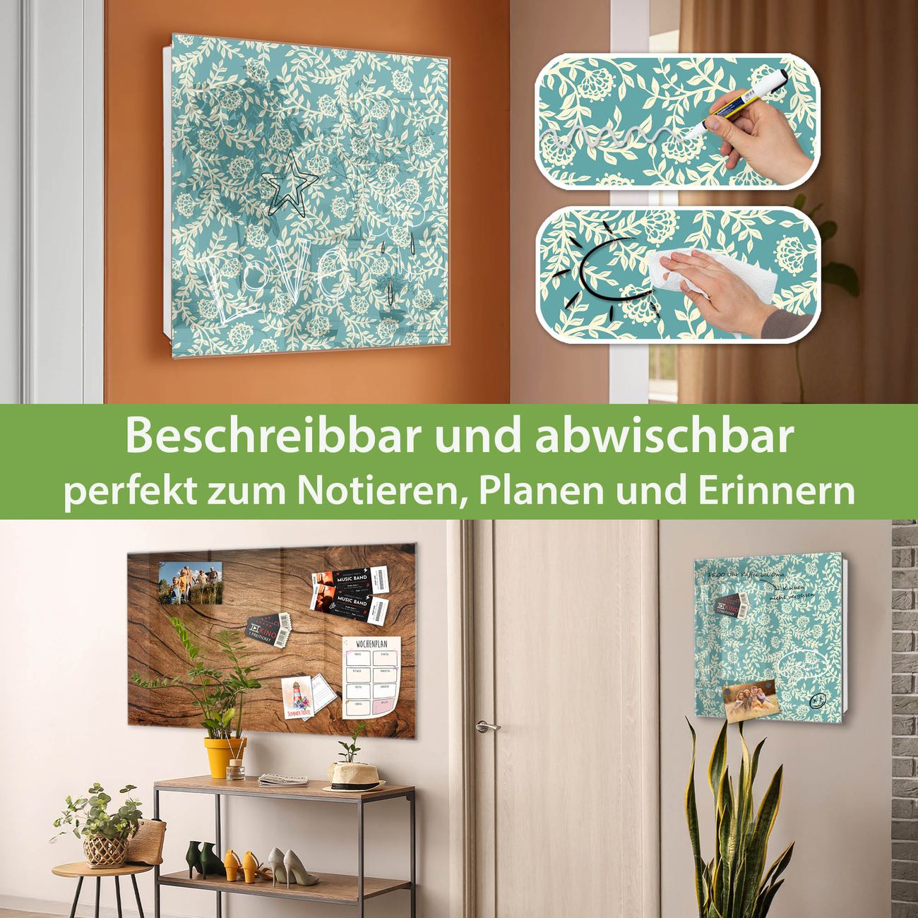 Bringe Ordnung und Eleganz in deinen Eingangsbereich mit dem banjado Schlüsselkasten Motiv Motiv Rankenornament. Die moderne Schlüsselbox kombiniert funktionales Design mit hochwertiger Verarbeitung und wird so zu einem echten Hingucker in Flur, Büro oder Ferienwohnung. ✅ Stilvolle Schlüsselaufbewahrung mit Glasfront im Motiv Motiv Rankenornament Der Design-Schlüsselkasten Motiv Motiv Rankenornament bietet Platz für bis zu 50 Schlüssel, die auf 5 stabilen Reihen mit je 10 Haken übersichtlich verstaut werden. Mit seinen kompakten Maßen von 30 x 30 x 5 cm passt die Schlüsselbox perfekt auch in kleinere Räume. Der weiß lackierte Stahlkorpus mit rechts angeschlagenem Türscharnier harmoniert mit der Glasfront und fügt sich nahtlos in jedes Wohnambiente ein. Ob als Schlüsselorganizer für Zuhause oder als praktische Lösung für Büros, Praxen und Gewerbe, der banjado Schlüsselkasten sorgt für Ordnung und Übersicht. Dank der magnetischen, mit Kreidestiften beschreibbaren Glasfront kannst du Notizen anheften oder Termine direkt auf der Oberfläche festhalten. Die Schlüsselbox Motiv Motiv Rankenornament zur Wandmontage wird inklusive Befestigungsmaterial geliefert und ist schnell angebracht. So hast du deine Schlüssel jederzeit griffbereit und zugleich stilvoll verstaut. Mit diesem banjado Schlüsselkasten Motiv Motiv Rankenornament kombinierst du praktische Aufbewahrung mit stilvollem Wohndesign. Ob privat oder geschäftlich, die Schlüsselbox sorgt für mehr Ordnung, Übersicht und ein wohnliches Ambiente.Vorteile im Überblick