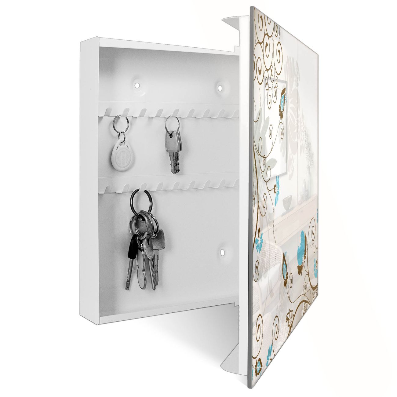 Schlüsselkasten Glas Motiv Rankenrahmen