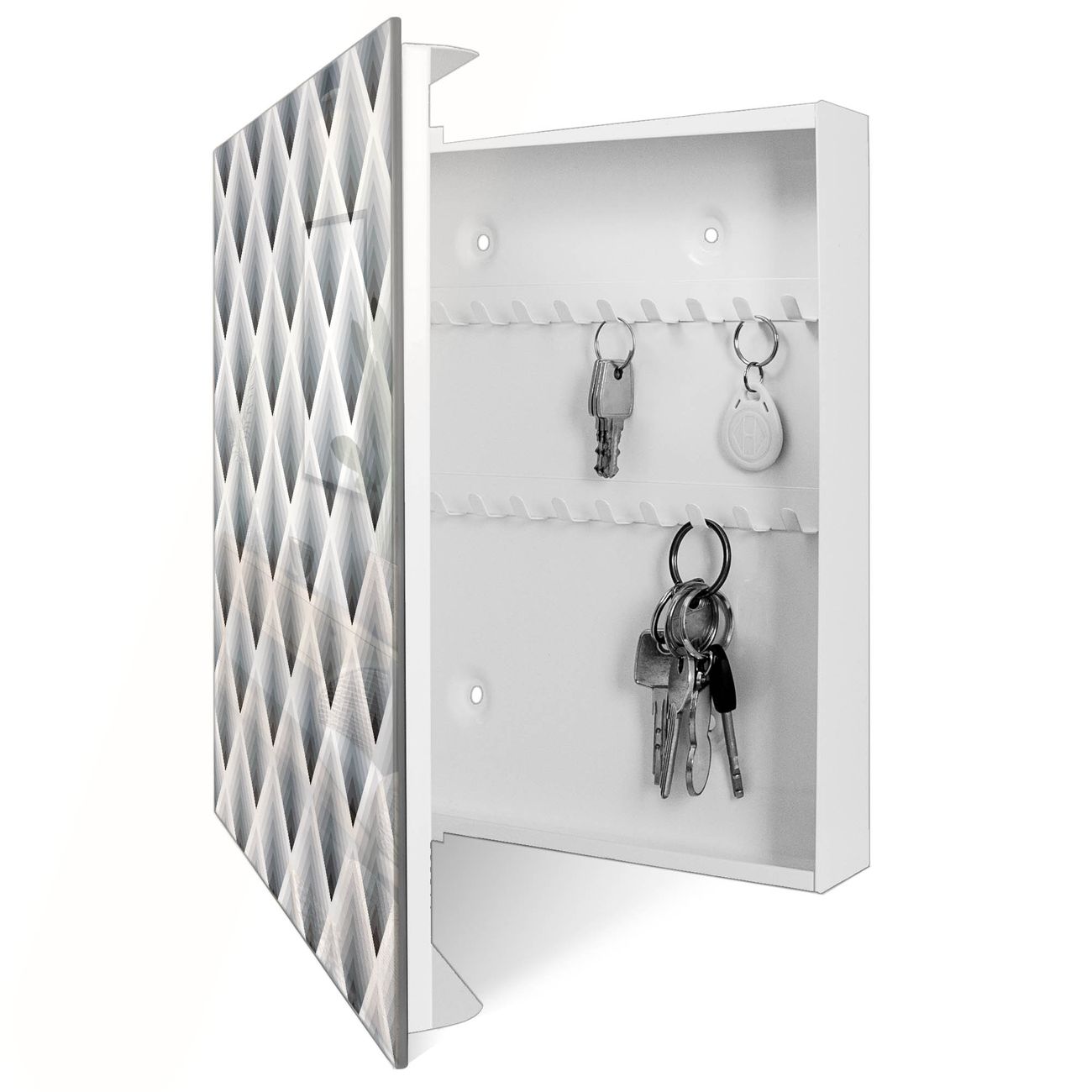 Schlüsselkasten Glas Motiv Raster 3D Grau