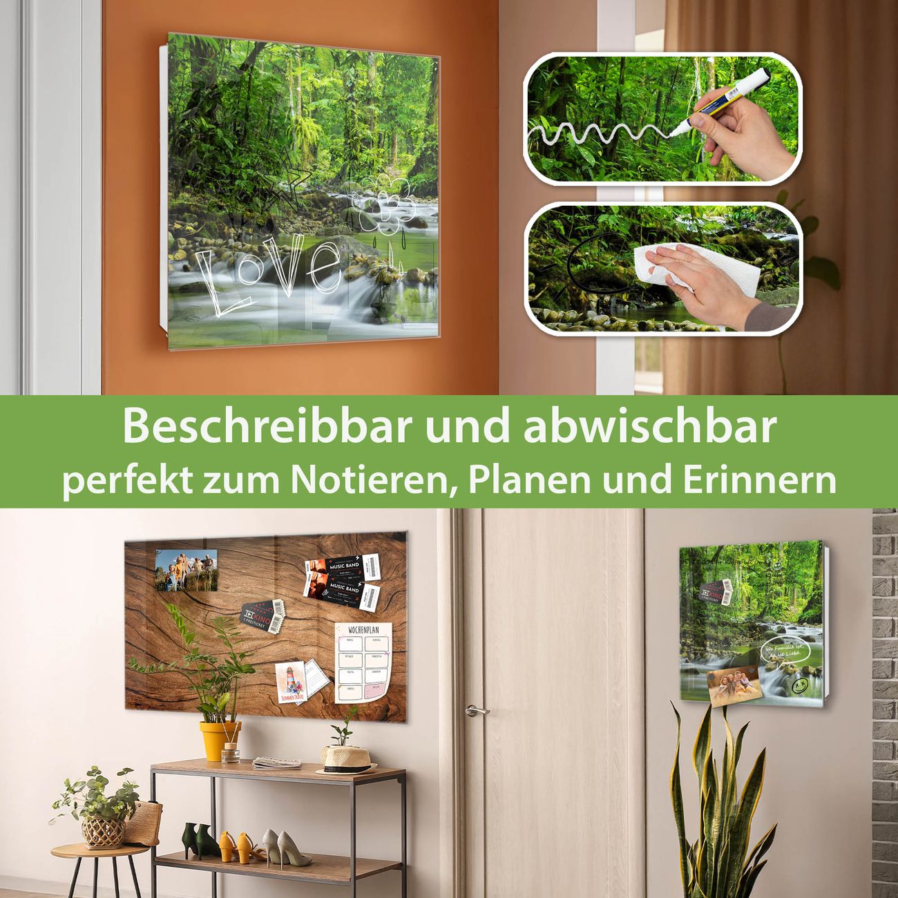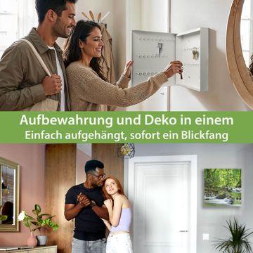 Bringe Ordnung und Eleganz in deinen Eingangsbereich mit dem banjado Schlüsselkasten Motiv Motiv Rauschender Bach. Die moderne Schlüsselbox kombiniert funktionales Design mit hochwertiger Verarbeitung und wird so zu einem echten Hingucker in Flur, Büro oder Ferienwohnung. ✅ Stilvolle Schlüsselaufbewahrung mit Glasfront im Motiv Motiv Rauschender Bach Der Design-Schlüsselkasten Motiv Motiv Rauschender Bach bietet Platz für bis zu 50 Schlüssel, die auf 5 stabilen Reihen mit je 10 Haken übersichtlich verstaut werden. Mit seinen kompakten Maßen von 30 x 30 x 5 cm passt die Schlüsselbox perfekt auch in kleinere Räume. Der weiß lackierte Stahlkorpus mit rechts angeschlagenem Türscharnier harmoniert mit der Glasfront und fügt sich nahtlos in jedes Wohnambiente ein. Ob als Schlüsselorganizer für Zuhause oder als praktische Lösung für Büros, Praxen und Gewerbe, der banjado Schlüsselkasten sorgt für Ordnung und Übersicht. Dank der magnetischen, mit Kreidestiften beschreibbaren Glasfront kannst du Notizen anheften oder Termine direkt auf der Oberfläche festhalten. Die Schlüsselbox Motiv Motiv Rauschender Bach zur Wandmontage wird inklusive Befestigungsmaterial geliefert und ist schnell angebracht. So hast du deine Schlüssel jederzeit griffbereit und zugleich stilvoll verstaut. Mit diesem banjado Schlüsselkasten Motiv Motiv Rauschender Bach kombinierst du praktische Aufbewahrung mit stilvollem Wohndesign. Ob privat oder geschäftlich, die Schlüsselbox sorgt für mehr Ordnung, Übersicht und ein wohnliches Ambiente.Vorteile im Überblick