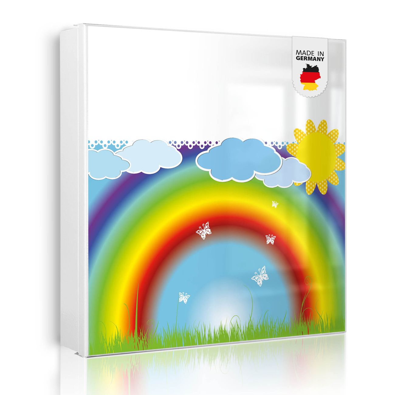 Bringe Ordnung und Eleganz in deinen Eingangsbereich mit dem banjado Schlüsselkasten Motiv Motiv Regenbogen. Die moderne Schlüsselbox kombiniert funktionales Design mit hochwertiger Verarbeitung und wird so zu einem echten Hingucker in Flur, Büro oder Ferienwohnung. ✅ Stilvolle Schlüsselaufbewahrung mit Motiv Motiv Regenbogen Der Design-Schlüsselkasten Motiv Motiv Regenbogen bietet Platz für bis zu 32 Schlüssel, die auf 4 stabilen Reihen mit je 8 Haken übersichtlich verstaut werden. Mit seinen kompakten Maßen von 30 x 30 x 5 cm passt die Schlüsselbox perfekt auch in kleinere Räume. Der weiß lackierte Stahlkorpus mit links angeschlagenem Türscharnier harmoniert mit gedruckten Folie auf der Front und fügt sich nahtlos in jedes Wohnambiente ein. Ob als Schlüsselorganizer für Zuhause oder als praktische Lösung für Büros, Praxen und Gewerbe, der banjado Schlüsselkasten sorgt für Ordnung und Übersicht. Dank der magnetischen, mit Kreidestiften beschreibbaren Folie auf der Front kannst du Notizen anheften oder Termine direkt auf der Oberfläche festhalten. Die Schlüsselbox Motiv Motiv Regenbogen zur Wandmontage wird inklusive Befestigungsmaterial geliefert und ist schnell angebracht. So hast du deine Schlüssel jederzeit griffbereit und zugleich stilvoll verstaut. Mit diesem banjado Schlüsselkasten Motiv Motiv Regenbogen kombinierst du praktische Aufbewahrung mit stilvollem Wohndesign. Ob privat oder geschäftlich, die Schlüsselbox sorgt für mehr Ordnung, Übersicht und ein wohnliches Ambiente.Vorteile im Überblick