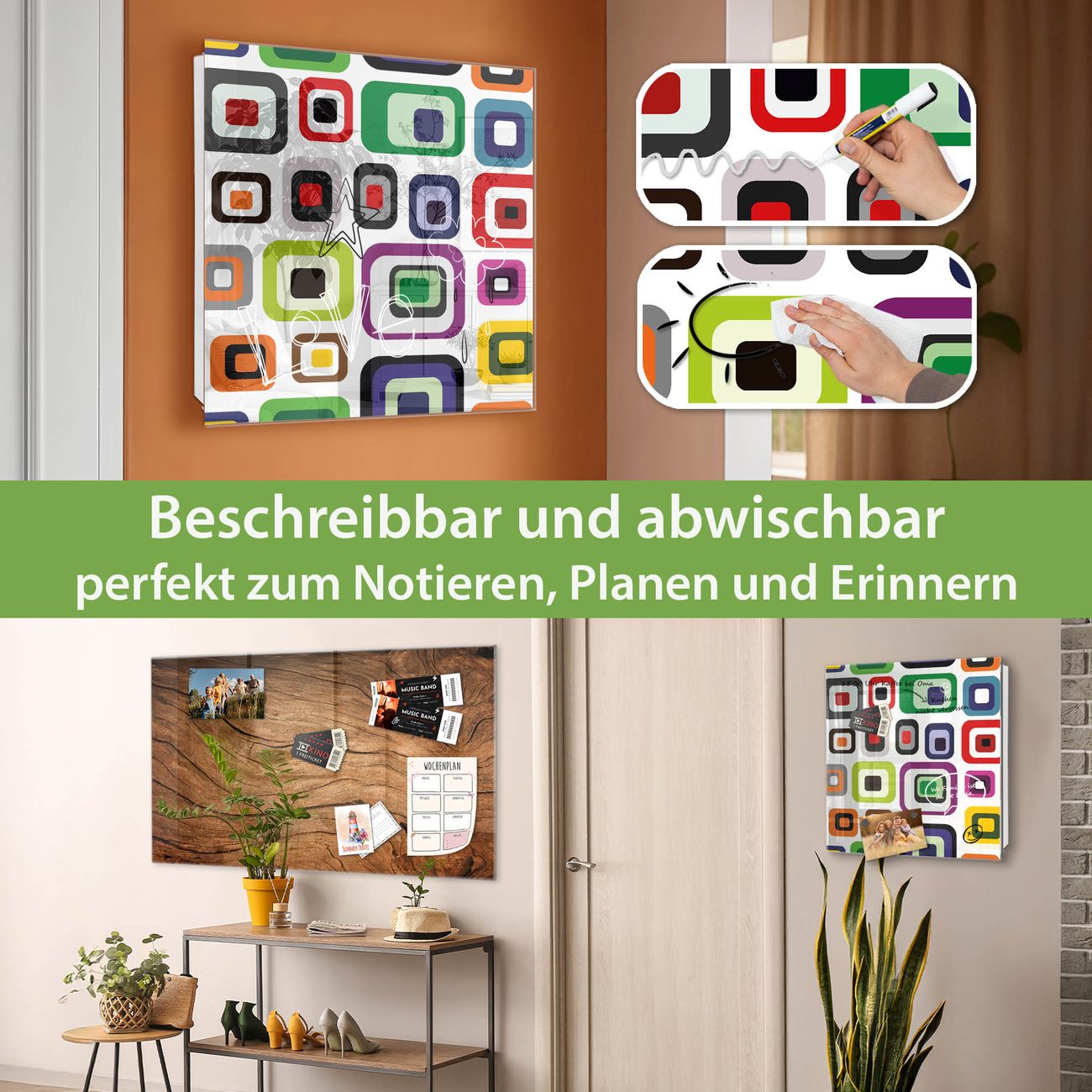 ✅ Magnetisch und mit Kreidestift beschreibbar, gehärtetes Glas, rechts angeschlagene TürOrdnung und Design in einem