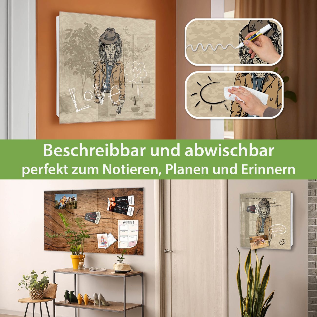 Bringe Ordnung und Eleganz in deinen Eingangsbereich mit dem banjado Schlüsselkasten Motiv Motiv Retro Style. Die moderne Schlüsselbox kombiniert funktionales Design mit hochwertiger Verarbeitung und wird so zu einem echten Hingucker in Flur, Büro oder Ferienwohnung. ✅ Stilvolle Schlüsselaufbewahrung mit Glasfront im Motiv Motiv Retro Style Der Design-Schlüsselkasten Motiv Motiv Retro Style bietet Platz für bis zu 50 Schlüssel, die auf 5 stabilen Reihen mit je 10 Haken übersichtlich verstaut werden. Mit seinen kompakten Maßen von 30 x 30 x 5 cm passt die Schlüsselbox perfekt auch in kleinere Räume. Der weiß lackierte Stahlkorpus mit rechts angeschlagenem Türscharnier harmoniert mit der Glasfront und fügt sich nahtlos in jedes Wohnambiente ein. Ob als Schlüsselorganizer für Zuhause oder als praktische Lösung für Büros, Praxen und Gewerbe, der banjado Schlüsselkasten sorgt für Ordnung und Übersicht. Dank der magnetischen, mit Kreidestiften beschreibbaren Glasfront kannst du Notizen anheften oder Termine direkt auf der Oberfläche festhalten. Die Schlüsselbox Motiv Motiv Retro Style zur Wandmontage wird inklusive Befestigungsmaterial geliefert und ist schnell angebracht. So hast du deine Schlüssel jederzeit griffbereit und zugleich stilvoll verstaut. Mit diesem banjado Schlüsselkasten Motiv Motiv Retro Style kombinierst du praktische Aufbewahrung mit stilvollem Wohndesign. Ob privat oder geschäftlich, die Schlüsselbox sorgt für mehr Ordnung, Übersicht und ein wohnliches Ambiente.Vorteile im Überblick