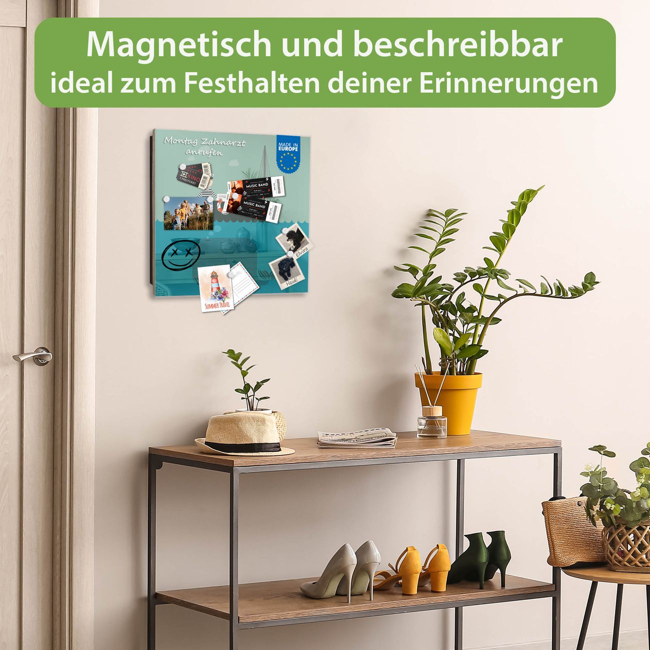 ✅ Magnetisch und mit Kreidestift beschreibbar, gehärtetes Glas, rechts angeschlagene TürOrdnung und Design in einem