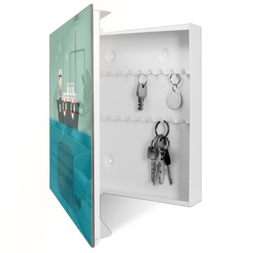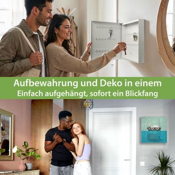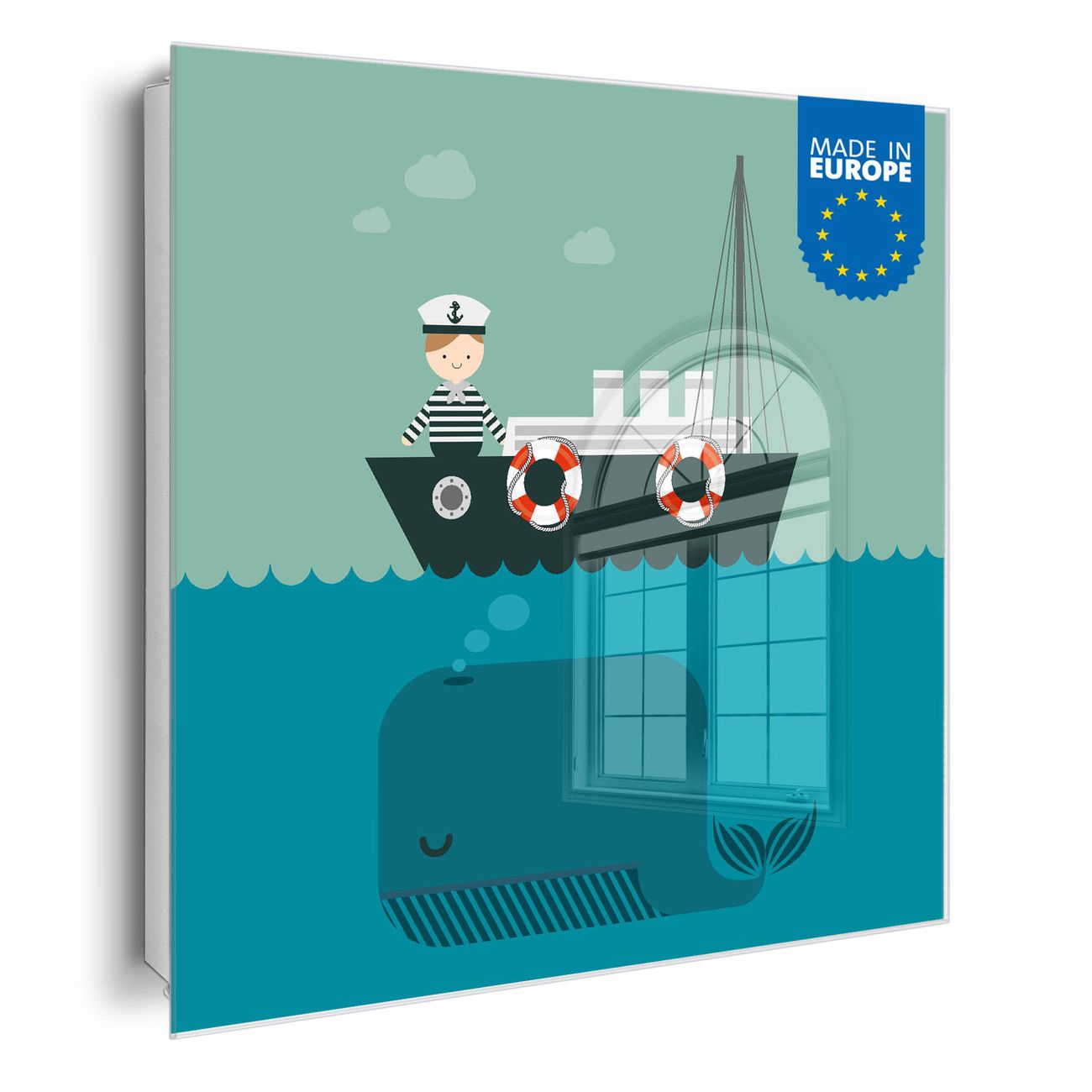 Bringe Ordnung und Eleganz in deinen Eingangsbereich mit dem banjado Schlüsselkasten Motiv Motiv Rettet die Wale. Die moderne Schlüsselbox kombiniert funktionales Design mit hochwertiger Verarbeitung und wird so zu einem echten Hingucker in Flur, Büro oder Ferienwohnung. ✅ Stilvolle Schlüsselaufbewahrung mit Glasfront im Motiv Motiv Rettet die Wale Der Design-Schlüsselkasten Motiv Motiv Rettet die Wale bietet Platz für bis zu 50 Schlüssel, die auf 5 stabilen Reihen mit je 10 Haken übersichtlich verstaut werden. Mit seinen kompakten Maßen von 30 x 30 x 5 cm passt die Schlüsselbox perfekt auch in kleinere Räume. Der weiß lackierte Stahlkorpus mit rechts angeschlagenem Türscharnier harmoniert mit der Glasfront und fügt sich nahtlos in jedes Wohnambiente ein. Ob als Schlüsselorganizer für Zuhause oder als praktische Lösung für Büros, Praxen und Gewerbe, der banjado Schlüsselkasten sorgt für Ordnung und Übersicht. Dank der magnetischen, mit Kreidestiften beschreibbaren Glasfront kannst du Notizen anheften oder Termine direkt auf der Oberfläche festhalten. Die Schlüsselbox Motiv Motiv Rettet die Wale zur Wandmontage wird inklusive Befestigungsmaterial geliefert und ist schnell angebracht. So hast du deine Schlüssel jederzeit griffbereit und zugleich stilvoll verstaut. Mit diesem banjado Schlüsselkasten Motiv Motiv Rettet die Wale kombinierst du praktische Aufbewahrung mit stilvollem Wohndesign. Ob privat oder geschäftlich, die Schlüsselbox sorgt für mehr Ordnung, Übersicht und ein wohnliches Ambiente.Vorteile im Überblick