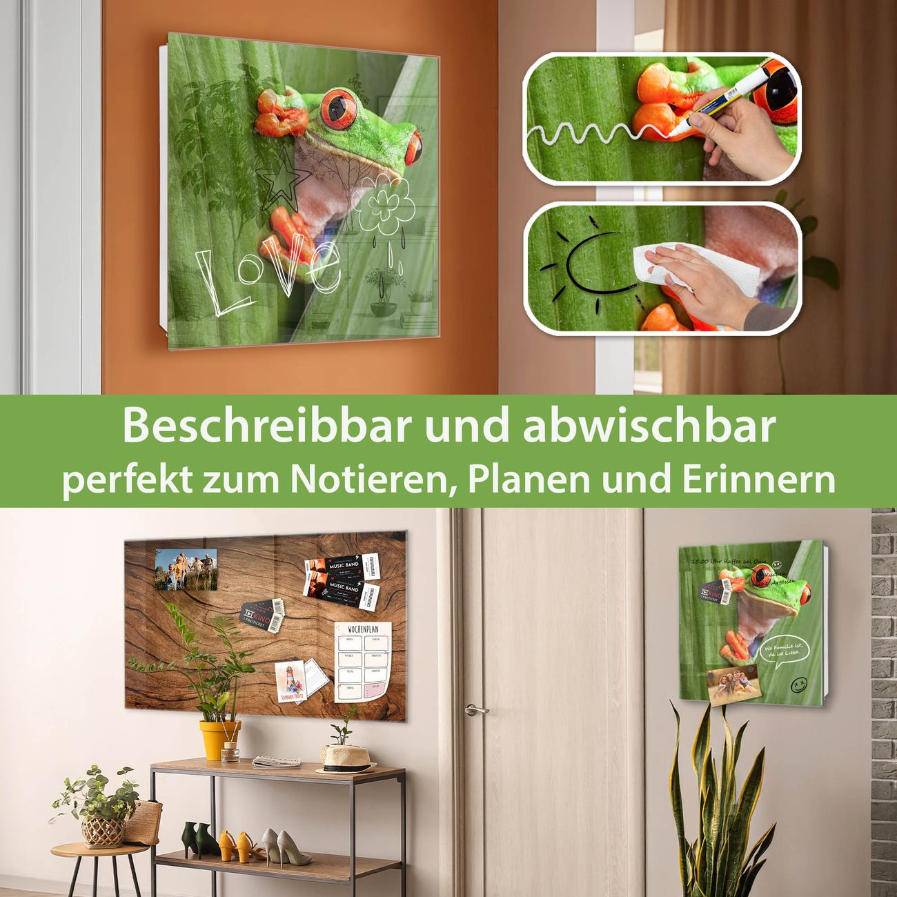 ✅ Magnetisch und mit Kreidestift beschreibbar, gehärtetes Glas, rechts angeschlagene TürOrdnung und Design in einem