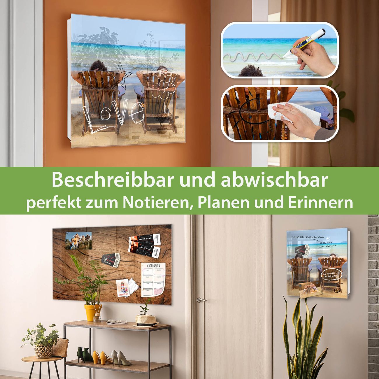 ✅ Magnetisch und mit Kreidestift beschreibbar, gehärtetes Glas, links angeschlagene TürOrdnung und Design in einem