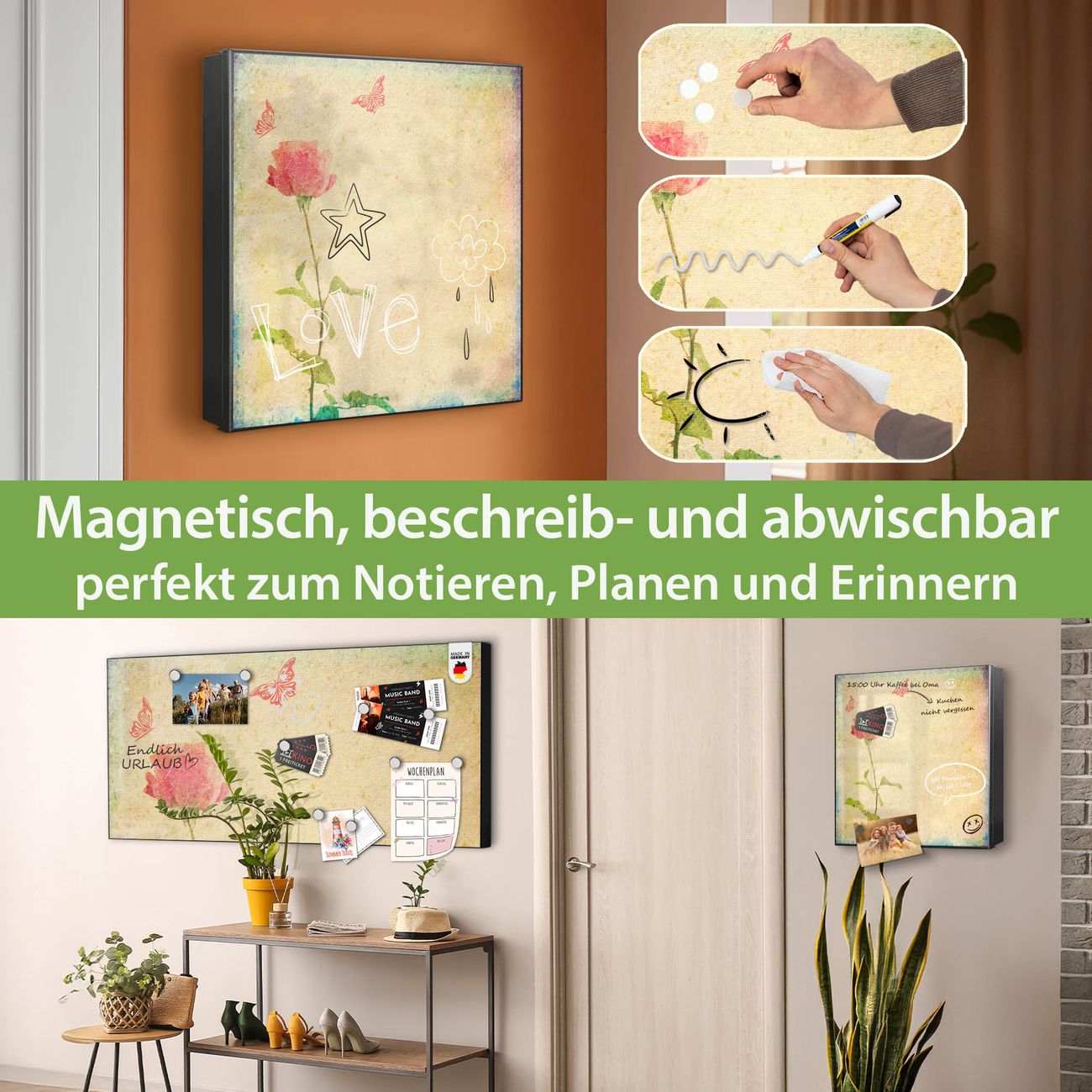 ✅ Magnetisch und mit Kreidestift beschreibbar, links angeschlagene TürOrdnung und Design in einem