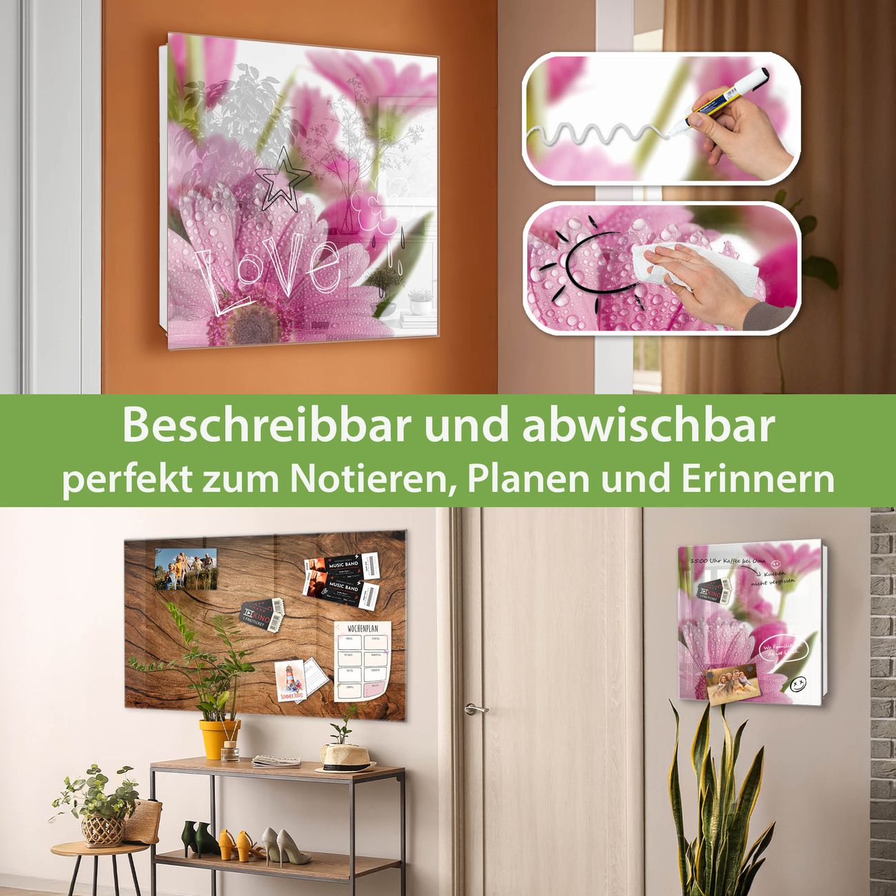 ✅ Magnetisch und mit Kreidestift beschreibbar, gehärtetes Glas, rechts angeschlagene TürOrdnung und Design in einem