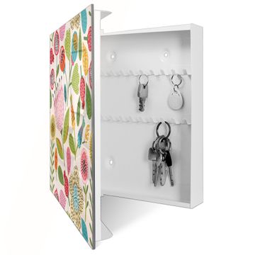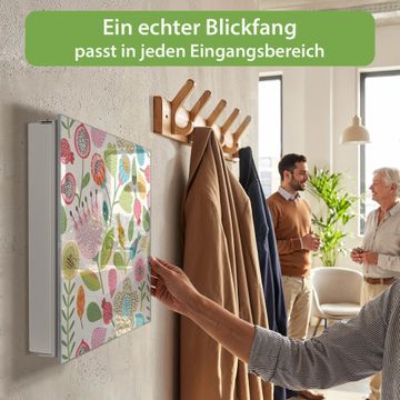 Bringe Ordnung und Eleganz in deinen Eingangsbereich mit dem banjado Schlüsselkasten Motiv Motiv Rosa Kelch Hell. Die moderne Schlüsselbox kombiniert funktionales Design mit hochwertiger Verarbeitung und wird so zu einem echten Hingucker in Flur, Büro oder Ferienwohnung. ✅ Stilvolle Schlüsselaufbewahrung mit Glasfront im Motiv Motiv Rosa Kelch Hell Der Design-Schlüsselkasten Motiv Motiv Rosa Kelch Hell bietet Platz für bis zu 50 Schlüssel, die auf 5 stabilen Reihen mit je 10 Haken übersichtlich verstaut werden. Mit seinen kompakten Maßen von 30 x 30 x 5 cm passt die Schlüsselbox perfekt auch in kleinere Räume. Der weiß lackierte Stahlkorpus mit rechts angeschlagenem Türscharnier harmoniert mit der Glasfront und fügt sich nahtlos in jedes Wohnambiente ein. Ob als Schlüsselorganizer für Zuhause oder als praktische Lösung für Büros, Praxen und Gewerbe, der banjado Schlüsselkasten sorgt für Ordnung und Übersicht. Dank der magnetischen, mit Kreidestiften beschreibbaren Glasfront kannst du Notizen anheften oder Termine direkt auf der Oberfläche festhalten. Die Schlüsselbox Motiv Motiv Rosa Kelch Hell zur Wandmontage wird inklusive Befestigungsmaterial geliefert und ist schnell angebracht. So hast du deine Schlüssel jederzeit griffbereit und zugleich stilvoll verstaut. Mit diesem banjado Schlüsselkasten Motiv Motiv Rosa Kelch Hell kombinierst du praktische Aufbewahrung mit stilvollem Wohndesign. Ob privat oder geschäftlich, die Schlüsselbox sorgt für mehr Ordnung, Übersicht und ein wohnliches Ambiente.Vorteile im Überblick