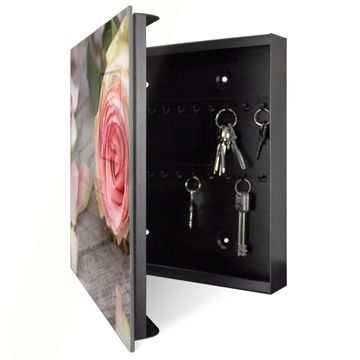 Schlüsselkasten Glas Motiv Rosa Rose