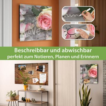 Bringe Ordnung und Eleganz in deinen Eingangsbereich mit dem banjado Schlüsselkasten Motiv Motiv Rosa Rose. Die moderne Schlüsselbox kombiniert funktionales Design mit hochwertiger Verarbeitung und wird so zu einem echten Hingucker in Flur, Büro oder Ferienwohnung. ✅ Stilvolle Schlüsselaufbewahrung mit Glasfront im Motiv Motiv Rosa Rose Der Design-Schlüsselkasten Motiv Motiv Rosa Rose bietet Platz für bis zu 50 Schlüssel, die auf 5 stabilen Reihen mit je 10 Haken übersichtlich verstaut werden. Mit seinen kompakten Maßen von 30 x 30 x 5 cm passt die Schlüsselbox perfekt auch in kleinere Räume. Der schwarz lackierte Stahlkorpus mit rechts angeschlagenem Türscharnier harmoniert mit der Glasfront und fügt sich nahtlos in jedes Wohnambiente ein. Ob als Schlüsselorganizer für Zuhause oder als praktische Lösung für Büros, Praxen und Gewerbe, der banjado Schlüsselkasten sorgt für Ordnung und Übersicht. Dank der magnetischen, mit Kreidestiften beschreibbaren Glasfront kannst du Notizen anheften oder Termine direkt auf der Oberfläche festhalten. Die Schlüsselbox Motiv Motiv Rosa Rose zur Wandmontage wird inklusive Befestigungsmaterial geliefert und ist schnell angebracht. So hast du deine Schlüssel jederzeit griffbereit und zugleich stilvoll verstaut. Mit diesem banjado Schlüsselkasten Motiv Motiv Rosa Rose kombinierst du praktische Aufbewahrung mit stilvollem Wohndesign. Ob privat oder geschäftlich, die Schlüsselbox sorgt für mehr Ordnung, Übersicht und ein wohnliches Ambiente.Vorteile im Überblick