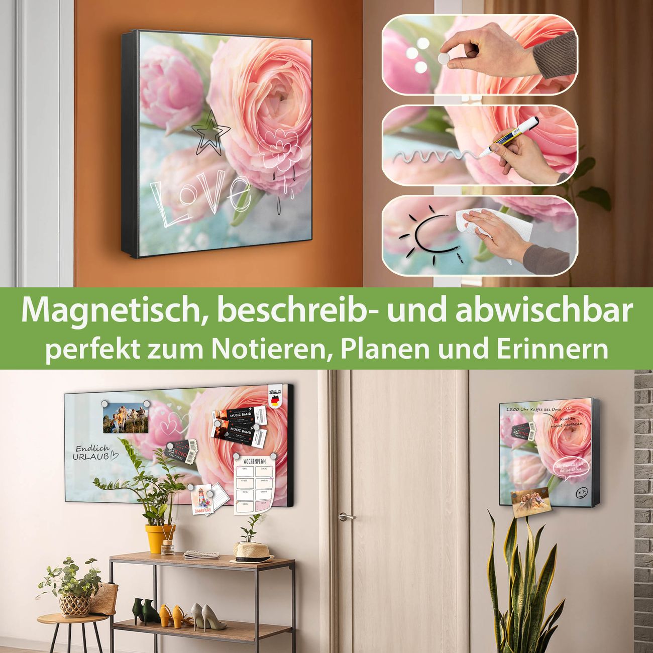 ✅ Magnetisch und mit Kreidestift beschreibbar, rechts angeschlagene TürOrdnung und Design in einem
