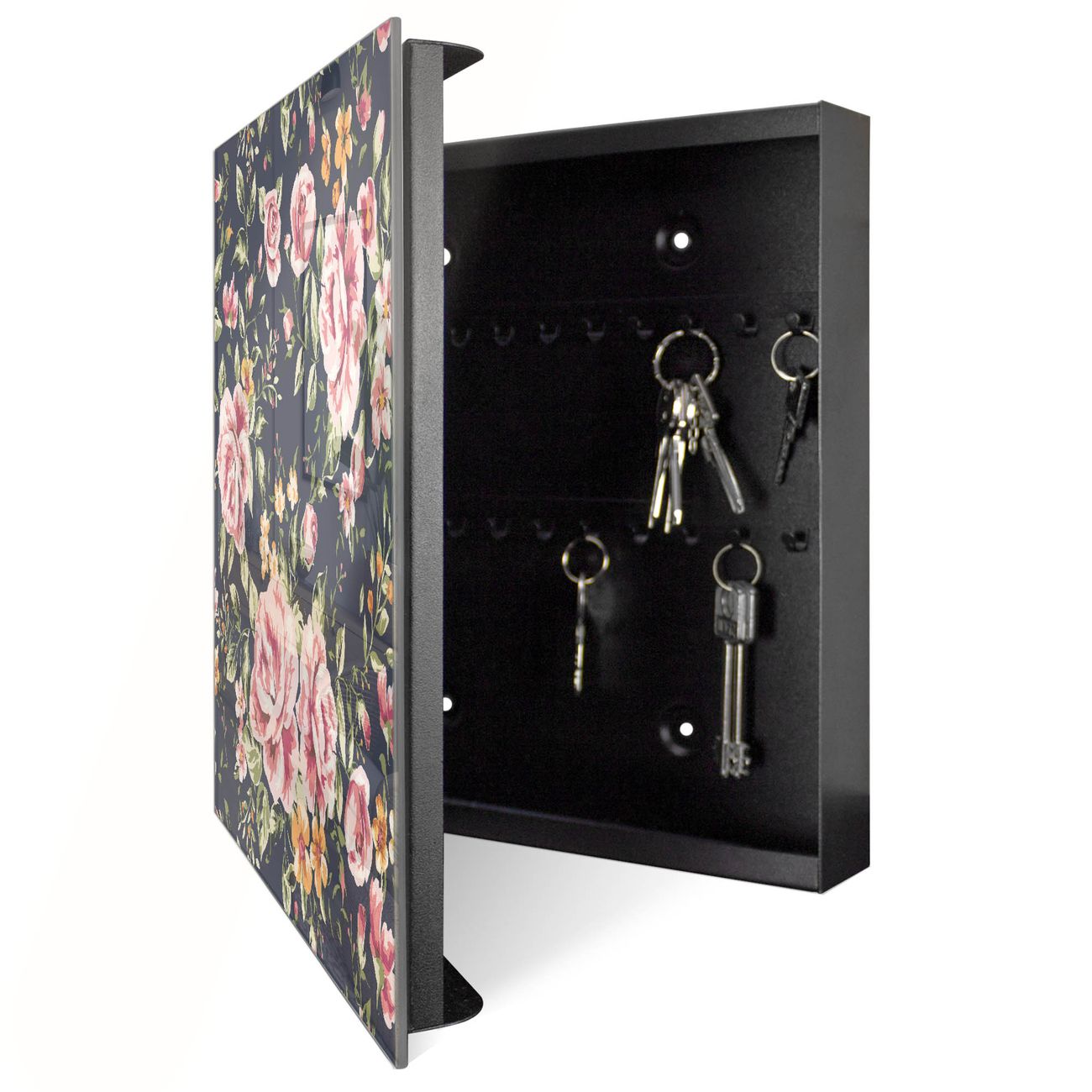 Schlüsselkasten Glas Motiv Rosen Auf Anthrazit
