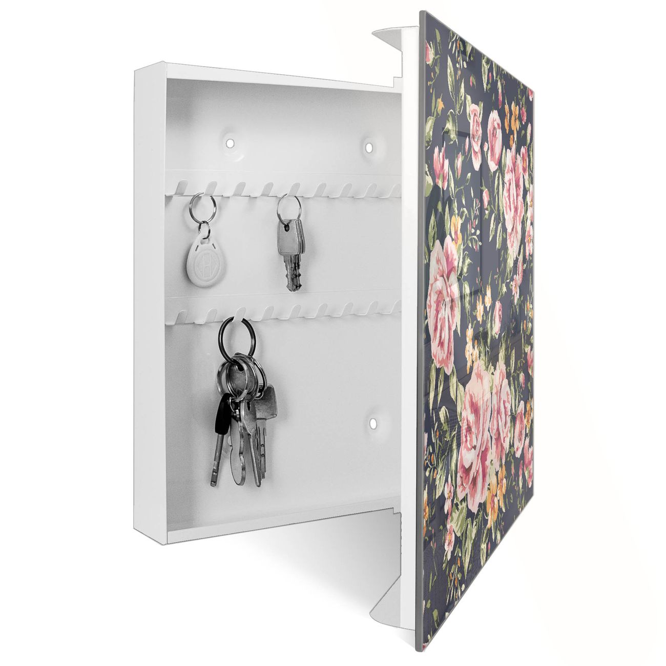 Schlüsselkasten Glas Motiv Rosen Auf Anthrazit