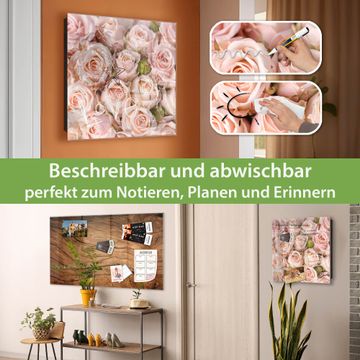 Bringe Ordnung und Eleganz in deinen Eingangsbereich mit dem banjado Schlüsselkasten Motiv Motiv Rosenbouquet. Die moderne Schlüsselbox kombiniert funktionales Design mit hochwertiger Verarbeitung und wird so zu einem echten Hingucker in Flur, Büro oder Ferienwohnung. ✅ Stilvolle Schlüsselaufbewahrung mit Glasfront im Motiv Motiv Rosenbouquet Der Design-Schlüsselkasten Motiv Motiv Rosenbouquet bietet Platz für bis zu 50 Schlüssel, die auf 5 stabilen Reihen mit je 10 Haken übersichtlich verstaut werden. Mit seinen kompakten Maßen von 30 x 30 x 5 cm passt die Schlüsselbox perfekt auch in kleinere Räume. Der schwarz lackierte Stahlkorpus mit rechts angeschlagenem Türscharnier harmoniert mit der Glasfront und fügt sich nahtlos in jedes Wohnambiente ein. Ob als Schlüsselorganizer für Zuhause oder als praktische Lösung für Büros, Praxen und Gewerbe, der banjado Schlüsselkasten sorgt für Ordnung und Übersicht. Dank der magnetischen, mit Kreidestiften beschreibbaren Glasfront kannst du Notizen anheften oder Termine direkt auf der Oberfläche festhalten. Die Schlüsselbox Motiv Motiv Rosenbouquet zur Wandmontage wird inklusive Befestigungsmaterial geliefert und ist schnell angebracht. So hast du deine Schlüssel jederzeit griffbereit und zugleich stilvoll verstaut. Mit diesem banjado Schlüsselkasten Motiv Motiv Rosenbouquet kombinierst du praktische Aufbewahrung mit stilvollem Wohndesign. Ob privat oder geschäftlich, die Schlüsselbox sorgt für mehr Ordnung, Übersicht und ein wohnliches Ambiente.Vorteile im Überblick