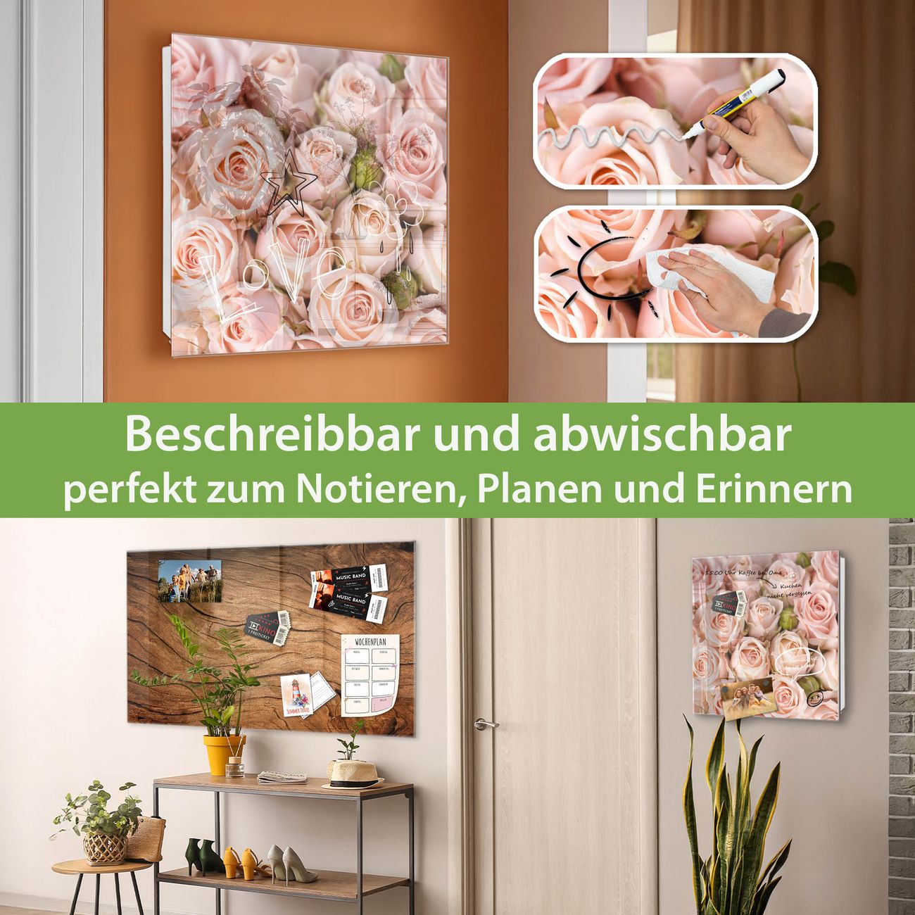 ✅ Magnetisch und mit Kreidestift beschreibbar, gehärtetes Glas, rechts angeschlagene TürOrdnung und Design in einem