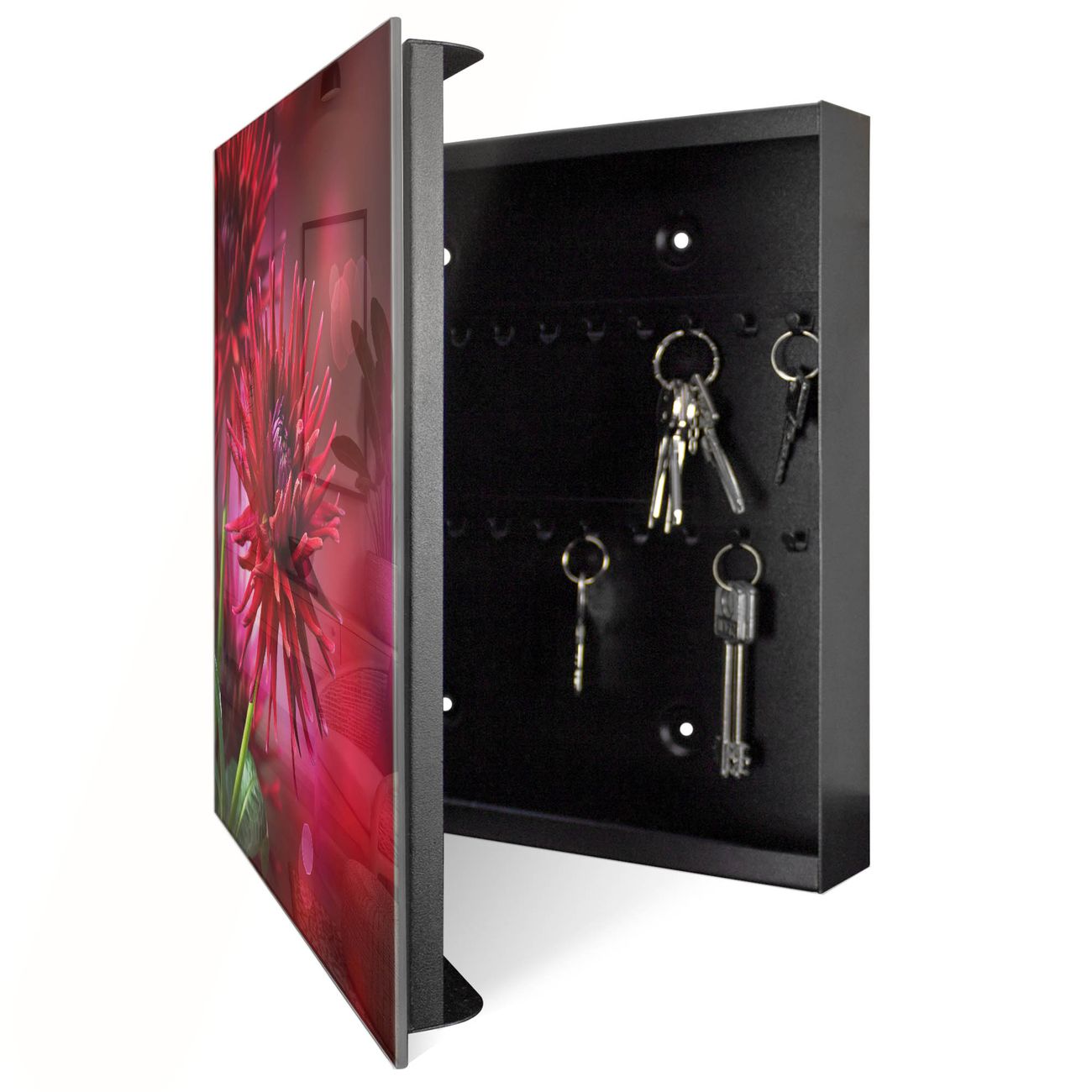Schlüsselkasten Glas Motiv Rote Dahlien