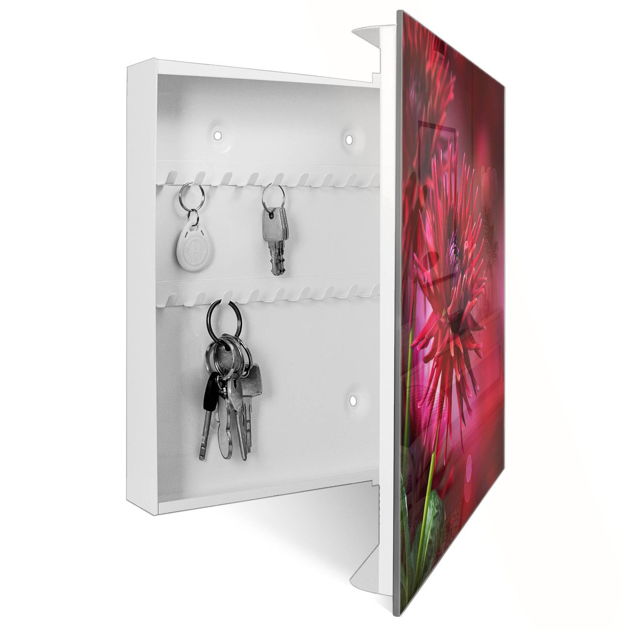 Schlüsselkasten Glas Motiv Rote Dahlien