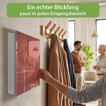 Bringe Ordnung und Eleganz in deinen Eingangsbereich mit dem banjado Schlüsselkasten Motiv Motiv Rote Holzlatten. Die moderne Schlüsselbox kombiniert funktionales Design mit hochwertiger Verarbeitung und wird so zu einem echten Hingucker in Flur, Büro oder Ferienwohnung. ✅ Stilvolle Schlüsselaufbewahrung mit Glasfront im Motiv Motiv Rote Holzlatten Der Design-Schlüsselkasten Motiv Motiv Rote Holzlatten bietet Platz für bis zu 50 Schlüssel, die auf 5 stabilen Reihen mit je 10 Haken übersichtlich verstaut werden. Mit seinen kompakten Maßen von 30 x 30 x 5 cm passt die Schlüsselbox perfekt auch in kleinere Räume. Der weiß lackierte Stahlkorpus mit rechts angeschlagenem Türscharnier harmoniert mit der Glasfront und fügt sich nahtlos in jedes Wohnambiente ein. Ob als Schlüsselorganizer für Zuhause oder als praktische Lösung für Büros, Praxen und Gewerbe, der banjado Schlüsselkasten sorgt für Ordnung und Übersicht. Dank der magnetischen, mit Kreidestiften beschreibbaren Glasfront kannst du Notizen anheften oder Termine direkt auf der Oberfläche festhalten. Die Schlüsselbox Motiv Motiv Rote Holzlatten zur Wandmontage wird inklusive Befestigungsmaterial geliefert und ist schnell angebracht. So hast du deine Schlüssel jederzeit griffbereit und zugleich stilvoll verstaut. Mit diesem banjado Schlüsselkasten Motiv Motiv Rote Holzlatten kombinierst du praktische Aufbewahrung mit stilvollem Wohndesign. Ob privat oder geschäftlich, die Schlüsselbox sorgt für mehr Ordnung, Übersicht und ein wohnliches Ambiente.Vorteile im Überblick