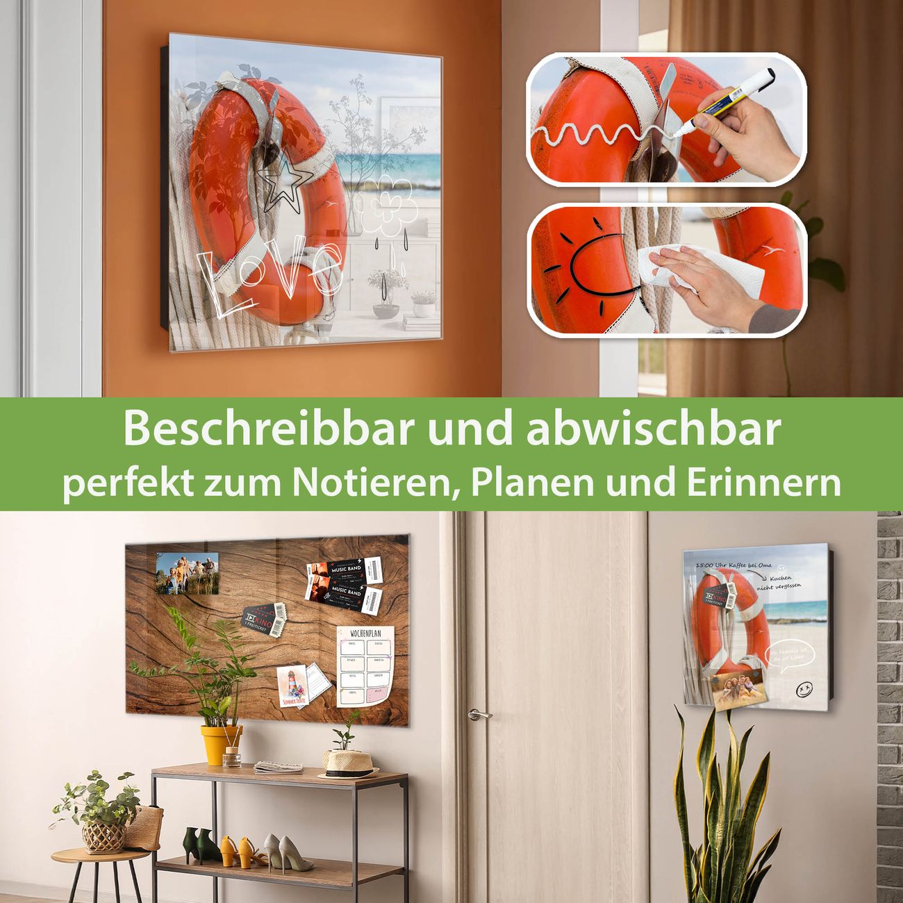 ✅ Magnetisch und mit Kreidestift beschreibbar, gehärtetes Glas, rechts angeschlagene TürOrdnung und Design in einem